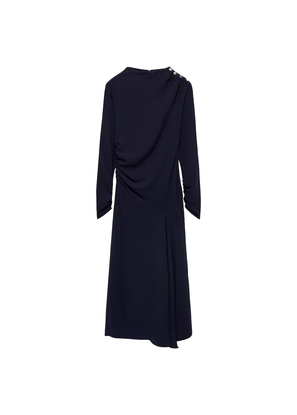 Асимметричное платье со сборками от MANGO - это воплощение стиля и женственности.