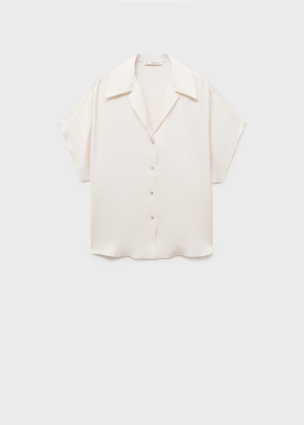 Атласная рубашка с коротким рукавом от MANGO - это стильный и элегантный выбор для вашего гардероба.