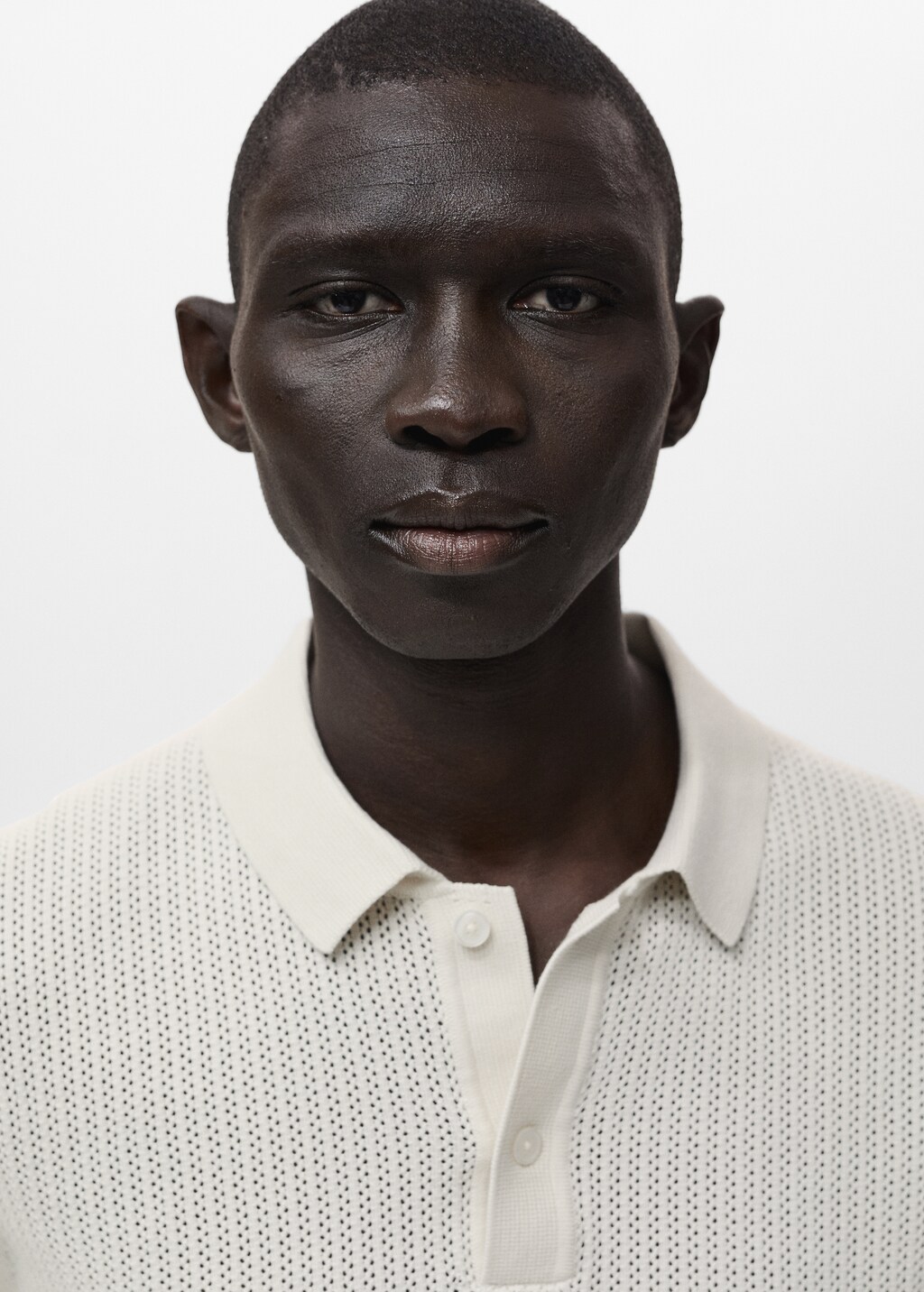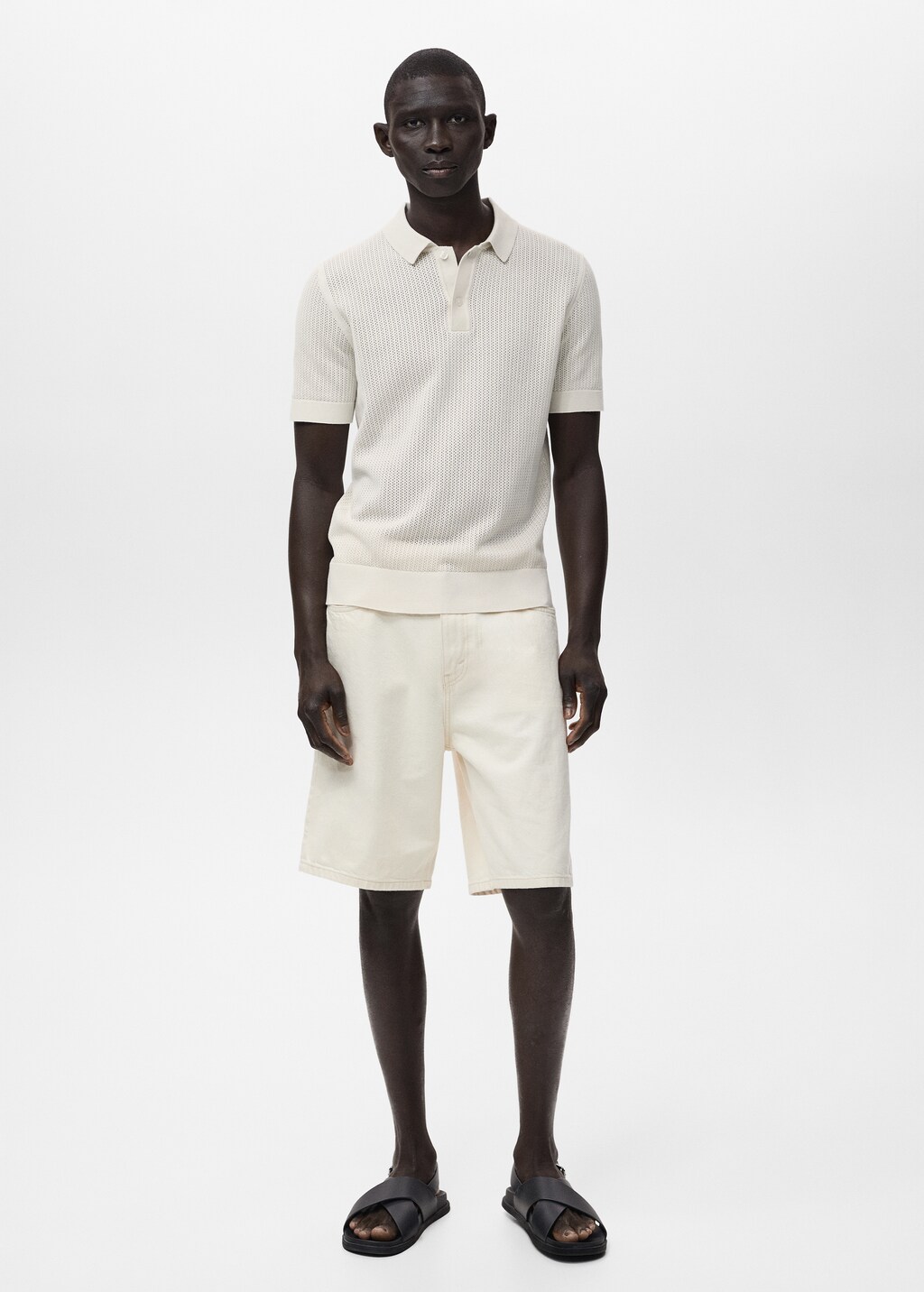 ткань 100% хлопок, прямой силуэт, тонкий трикотаж с ажуром, воротник поло с застежкой на пуговицы, короткий рукав, воротник, манжеты и низ с отделкой в рубчик, модель ростом 190 см носит размер m,, . длина спины: 66,0 cm
