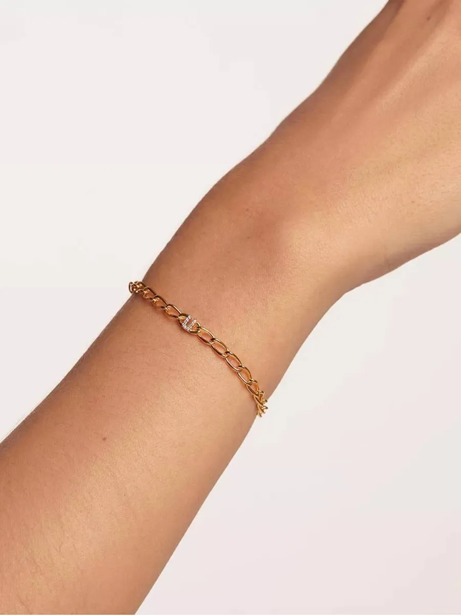 Браслет женский Буква U PU01-558-U - это стильное и оригинальное украшение, которое станет прекрасным дополнением к вашему образу. Изготовленный из серебра 925 пробы с гальваническим покрытием 18‑каратным золотом, этот браслет отличается высоким качеством и долговечностью.