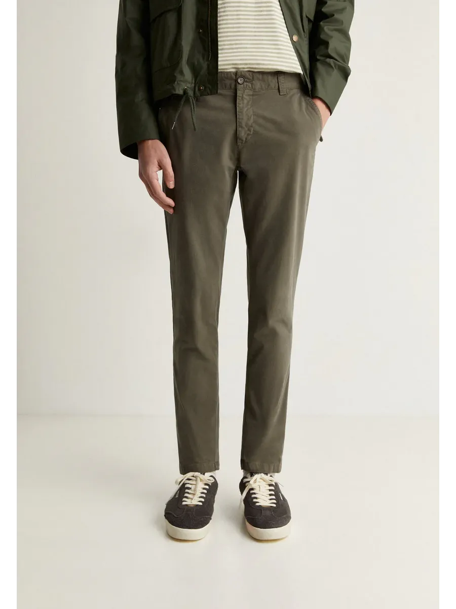Брюки чинос. Slim fit Из слегка эластичного хлопка Застежка на молнию и пуговицу Боковые карманы с наклонным горлышком и карманом для спичек спереди Задние карманы Vivo и пуговицы Петельки на талии