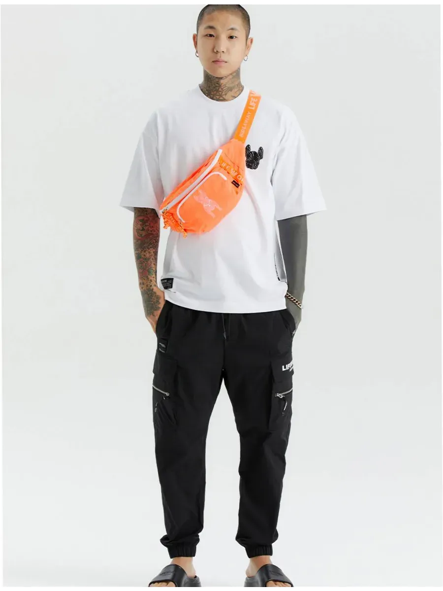 Нейлоновые джоггеры с эластаном. Удобные джоггеры из нейлона и эластана с высокой подвижностью. Двусторонние карманы и детали с молнией. Фирменные нашивки и принт с логотипом. Регулировка размера с помощью эластичного пояса и шнурка.