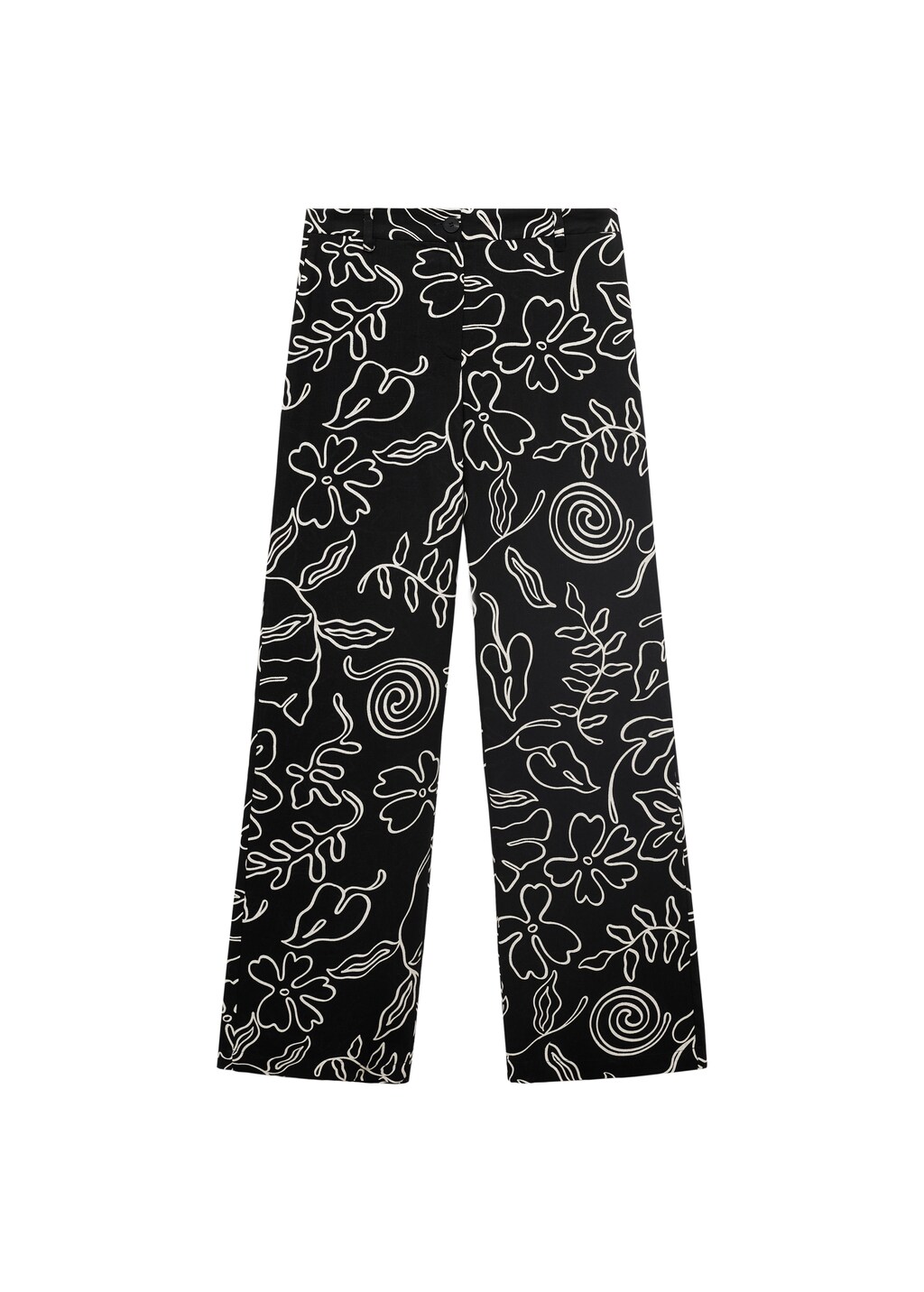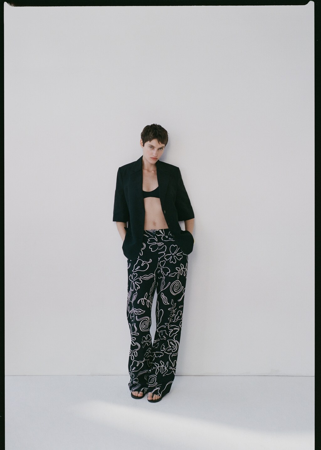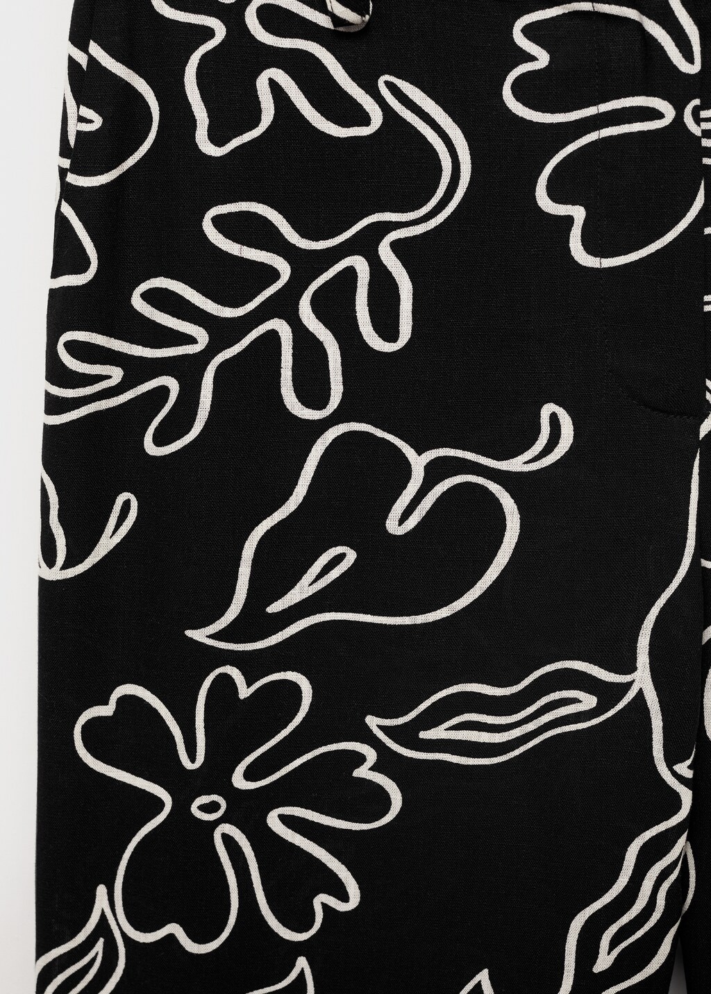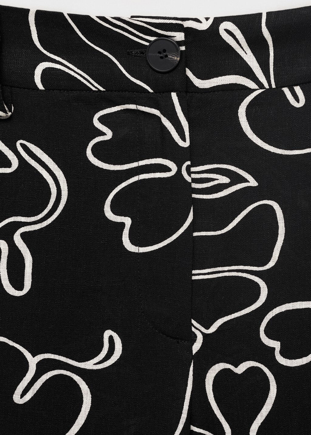 ткань из смеси льна, длинный дизайн, прямой крой, цветочный принт, средняя посадка, шлёвки, два боковых кармана, застежка на пуговицу и молнию, total look,, . внутренняя длина: 81,0 cm . внешняя длина: 110,0 cm