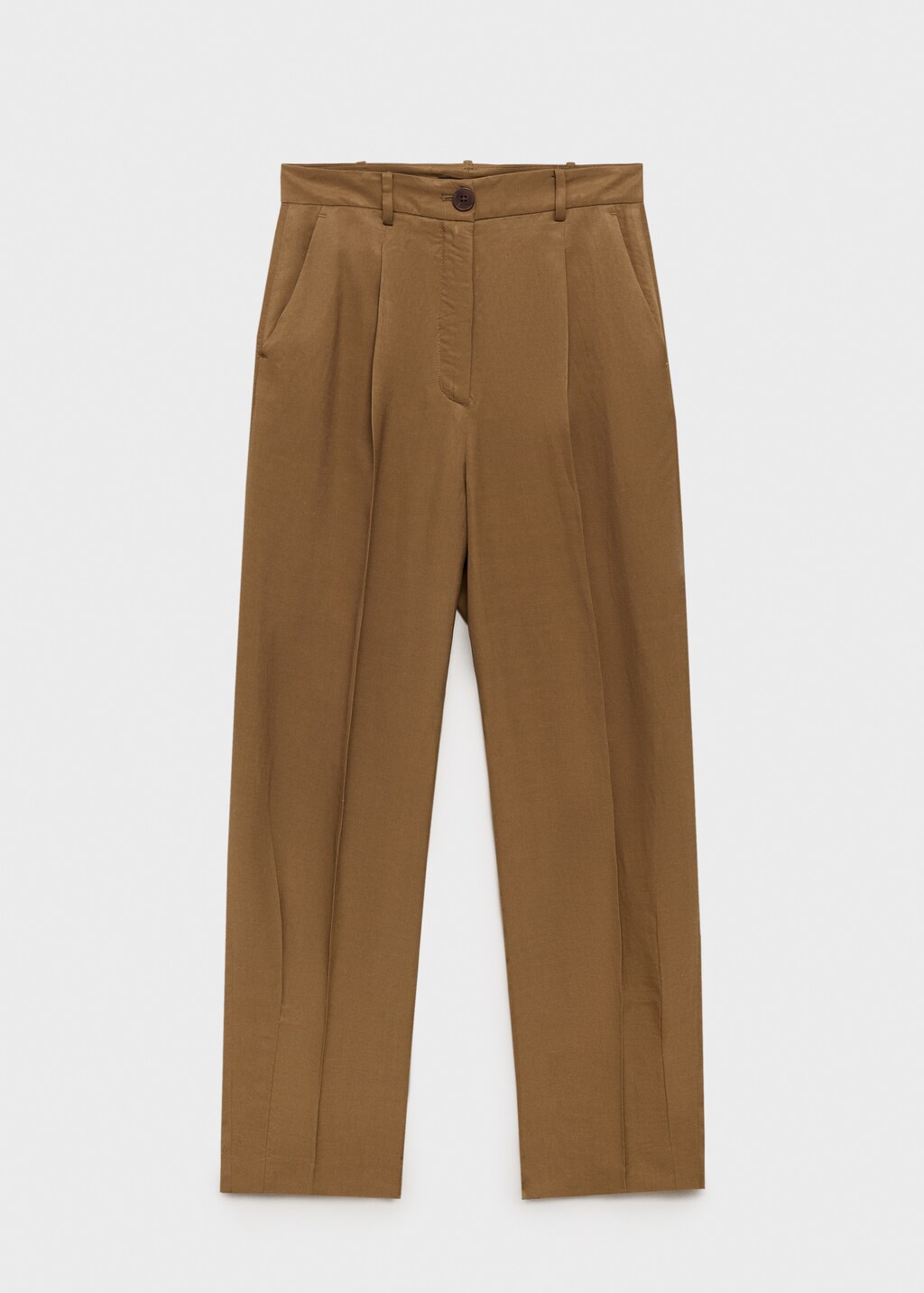 Брюки из смесового льна с защипами от MANGO – стильный и комфортный выбор для вашего гардероба.