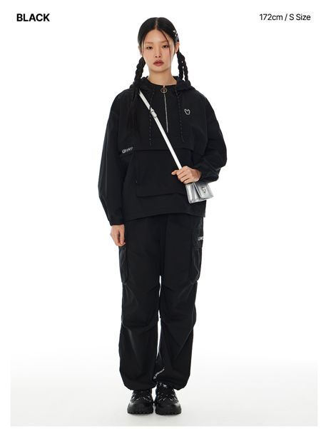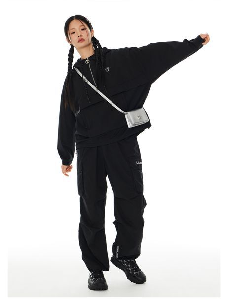 Свободные брюки карго черного цвета выполнены из хлопка с добавлением нейлона и полиуретана для комфортной посадки. Модель с логотипом из базовой спортивной коллекции Lifework, изготовлена во Вьетнаме.