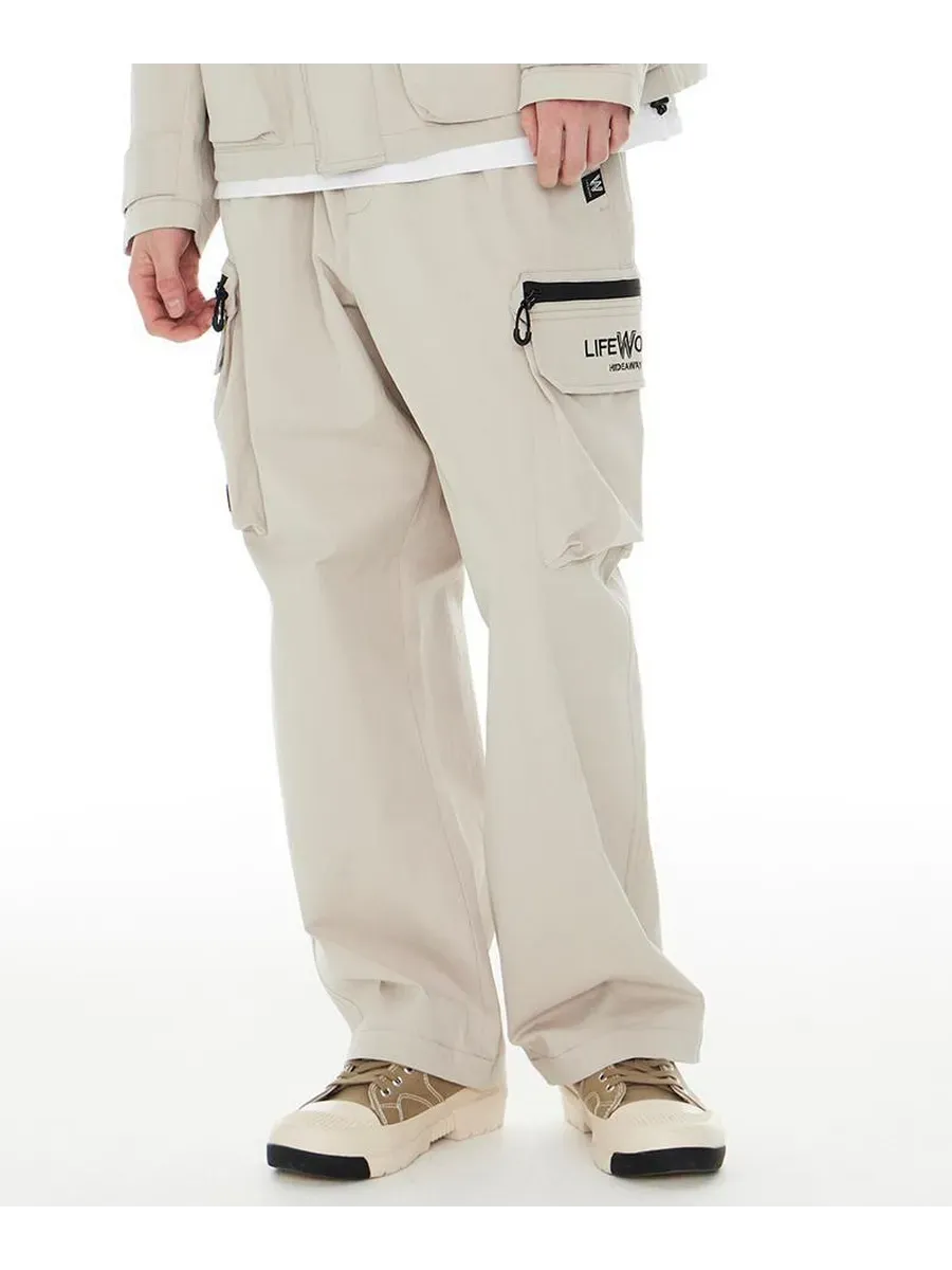 Широкие брюки Windweave. Полу-широкие брюки из хлопка, нейлона и эластана. Объемные накладные карманы и дизайн с молнией. Вышитый логотип и декоративные лейблы. Регулировка размера с помощью манжет внизу и шнурка на талии.