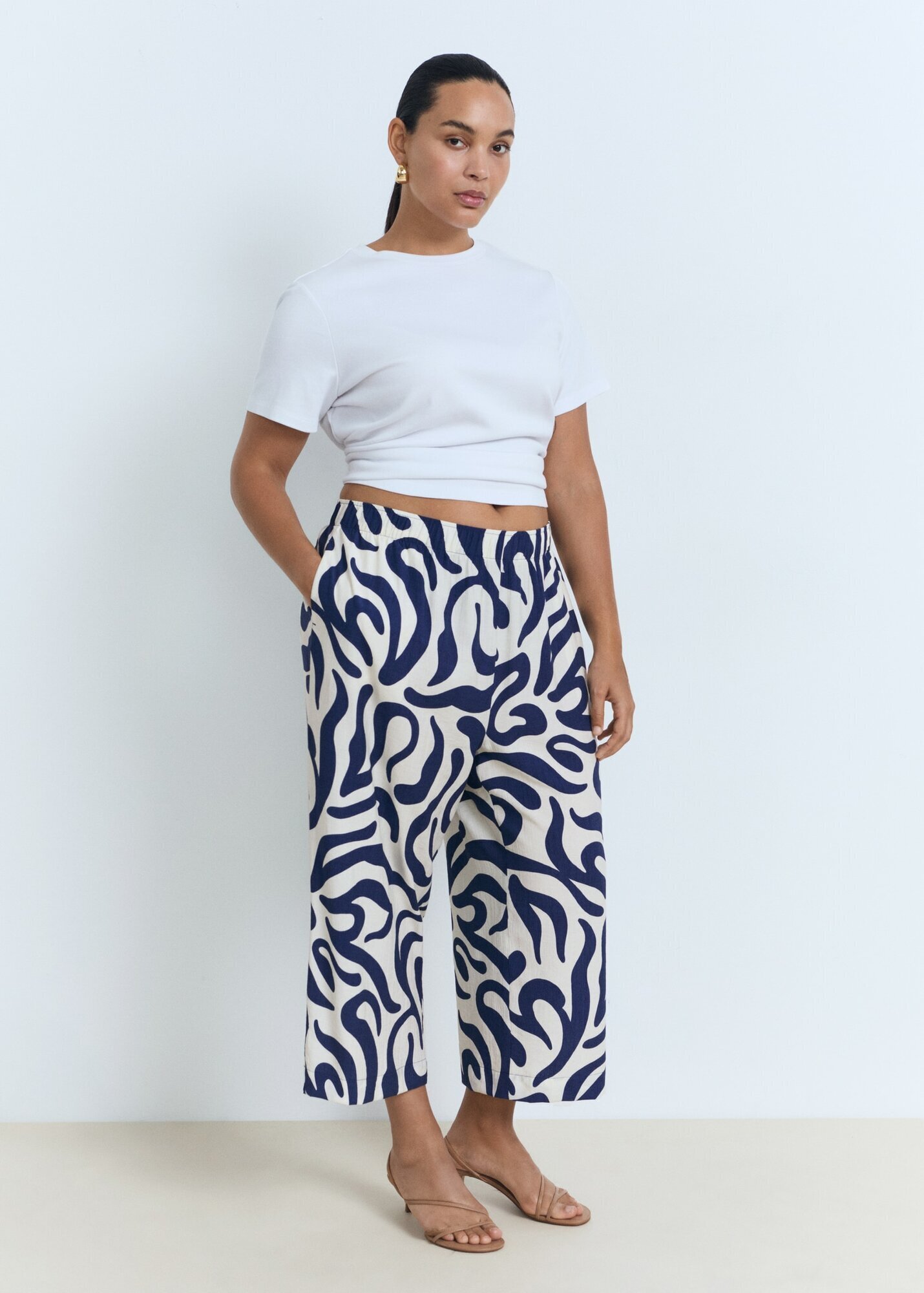 Брюки-кюлоты с принтом от MANGO – стильный и модный выбор для взрослых.