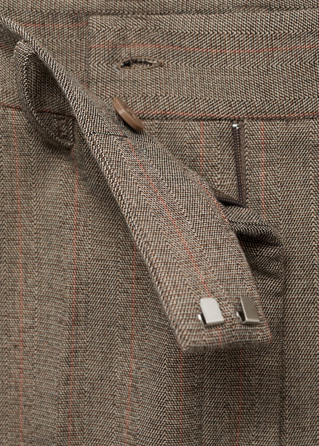 Брюки оснащены двумя боковыми карманами, застежкой на молнию, пуговицу и потайные крючки под планкой. Внутренняя подкладка и подкладка из полиэстера и хлопка обеспечивают дополнительный комфорт.