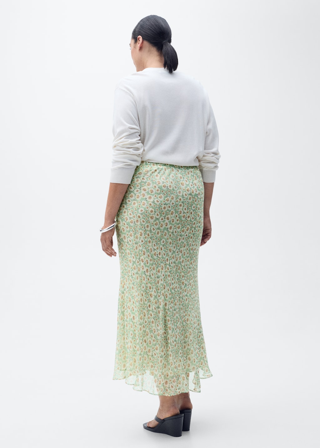 Длинная расклешенная юбка с цветами от MANGO - это стильный и яркий элемент гардероба, который подчеркнет вашу индивидуальность и добавит в образ нотки женственности и романтичности.