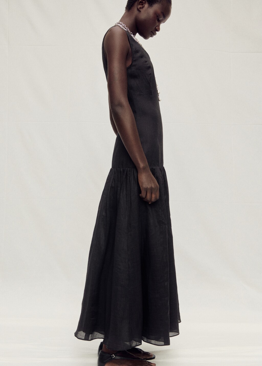 в состав ткани входят лен и рами, длинный дизайн, расклешенный дизайн, круглый вырез, без рукавов, широкие бретели, застежка-молния сзади, коллекция selection,, . внешняя длина: 112,6 cm . длина спины: 63,2 cm