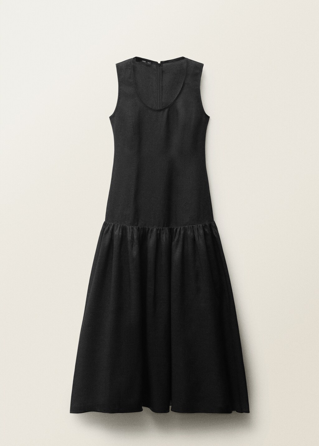 СОСТАВ: 51% ЛЕН, 49% РАМИ. ПОДКЛАДКА: 100% ХЛОПОК. ЮБКА: 100% РАМИ. КАЙМА: 100% РАМИ.