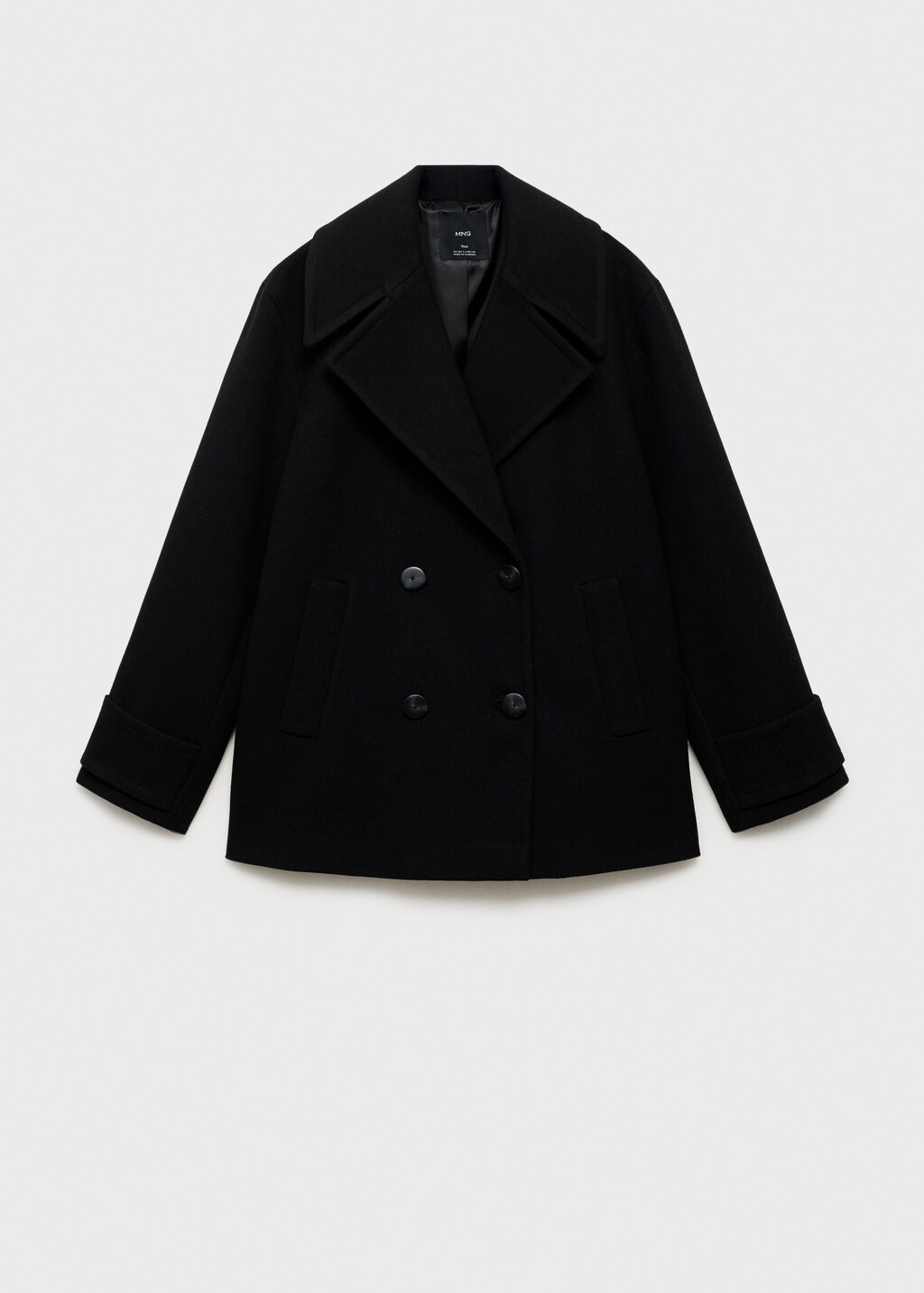 в состав входит шерсть, перекрёстный фасон, прямой крой, воротник с лацканами, лацканы с вырезом, длинные рукава с манжетами-хлястиками на пуговице, два боковых кармана, спереди двубортная застежка на пуговицы, внутренняя подкладка,, . внешняя длина: 44,8 cm . длина спины: 75,2 cm