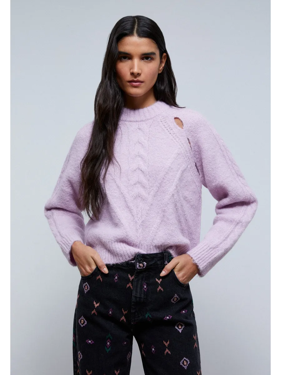 Джемпер из полупрозрачной воздушной вязки и мягкой пряжи с добавлением шерсти альпаки. Детали: полуприлегающий крой, круглый вырез. Альпака — это мягкое, прочное и шелковистое натуральное волокно. Благодаря составу отлично согревает и обладает естественными водоотталкивающими свойствами. Можно сочетать с базовыми джинсами, юбками из денима и брюками из костюмной ткани.