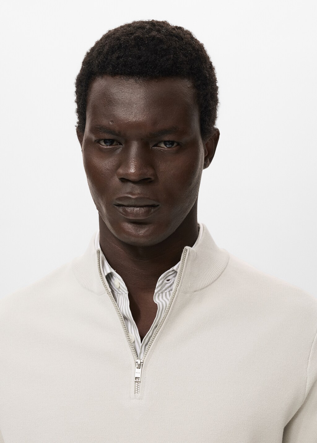 тонкий трикотаж, прямой крой, воротник перкинс с застежкой-молнией, воротник, манжеты и низ с отделкой в рубчик, модель ростом 190 см носит размер m,, . длина спины: 65,5 cm