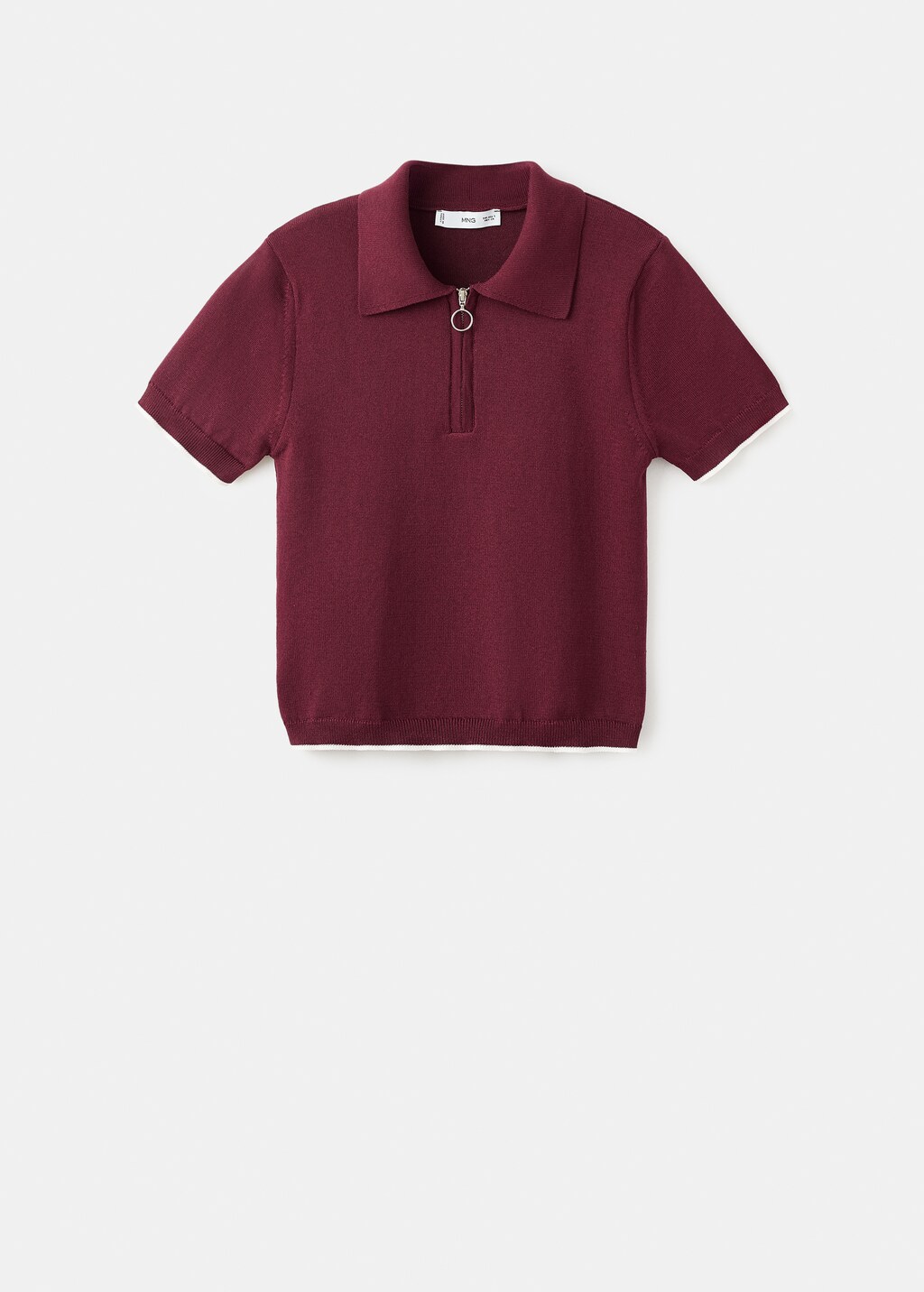тонкий трикотаж, прямой крой, воротник поло с застежкой на молнию, короткий рукав, контрастные края,, . длина спины: 48,0 cm