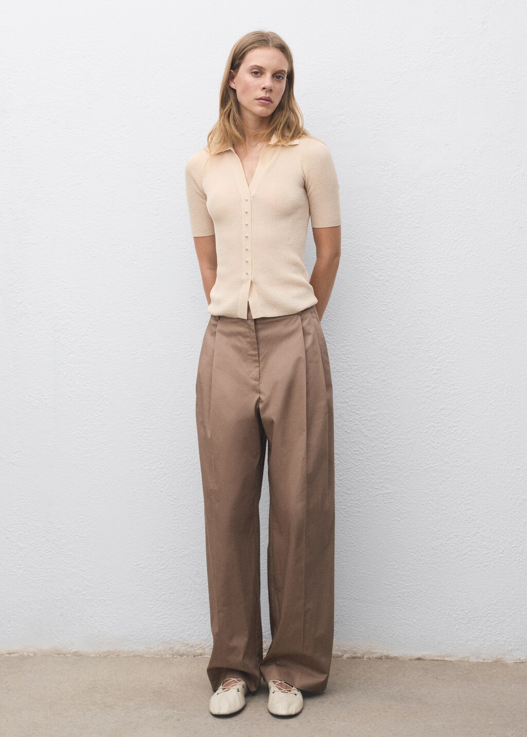 хлопковая ткань, тонкий трикотаж, ребристая вязка, приталенный дизайн, рубашечный воротник, короткий рукав, передняя застежка на пуговицы,, . длина спины: 54,0 cm