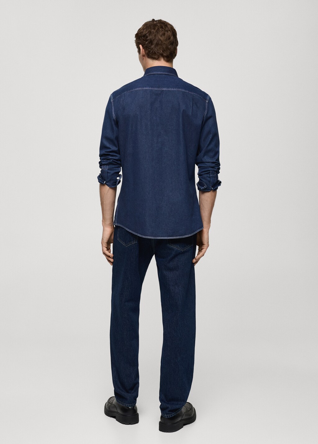 classic fit, 100% хлопок, джинсовая ткань из хлопка в стиле ковбой, рубашечный воротник, застежка на пуговицы, накладной карман на груди, закругленный низ, манжеты на пуговицах, модель ростом 185 см и носит размер m,, . длина спины: 77,5 cm
