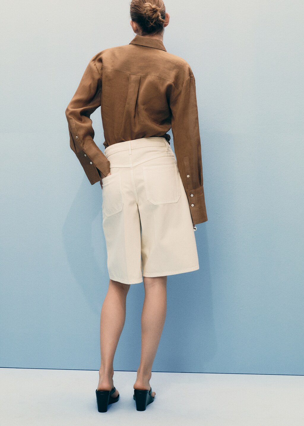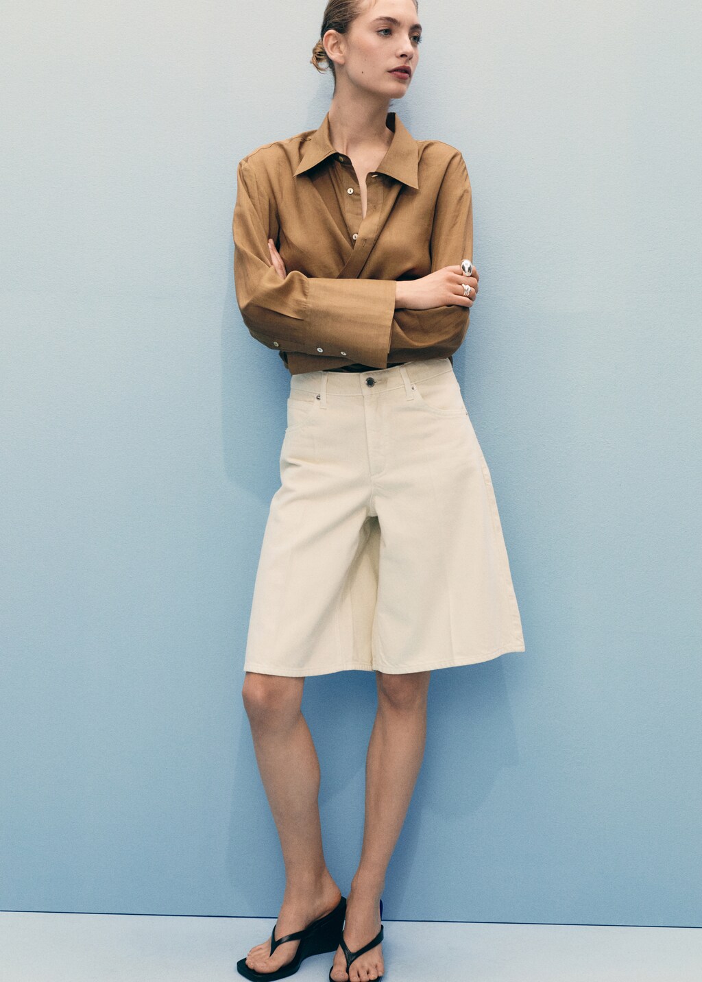 джинсовая ткань из хлопка в стиле ковбой, прямой крой, дизайн джорты, миди дизайн, высокая посадка, шлёвки, пять карманов, передняя застежка на молнию и пуговицу,, . внутренняя длина: 31,0 cm . внешняя длина: 57,8 cm