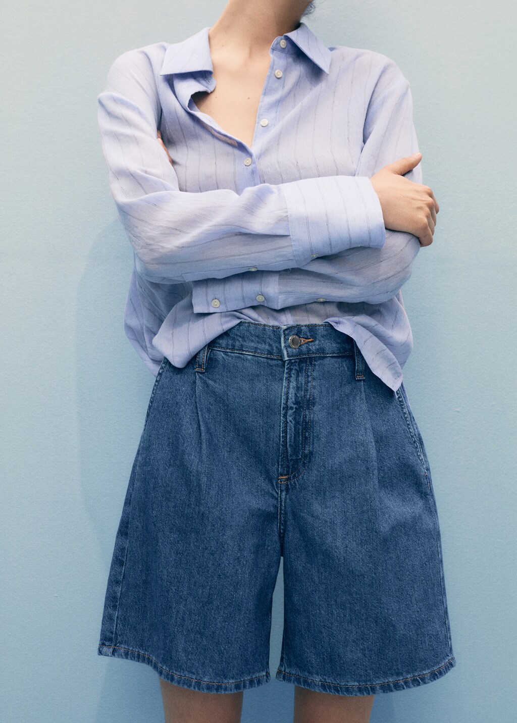 Складки на бермудах добавляют им оригинальности и делают их более интересными.
