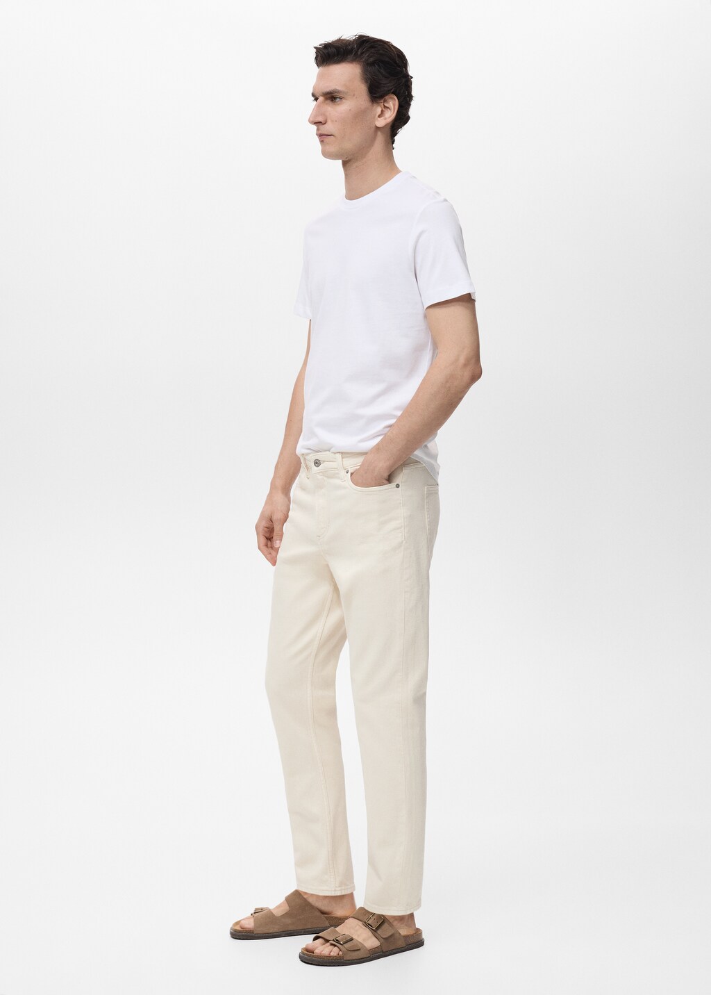 tapered fit: свободные штанины, зауженные от колена до щиколотки, рост модели: 180 см, размер: 42, рост модели: 185 см, размер: 42, изделие выполнено из хлопка, белый цвет, шлевки для пояса, цвет экрю, фасон tappered, хлопковая ткань, кроп-дизайн, стиль джинсов, шлевки для ремня, застежка-молния и пуговица, два боковых кармана, карман для монет, два накладных кармана сзади,, . внутренняя длина: 72,0 cm . внешняя длина: 98,0 cm