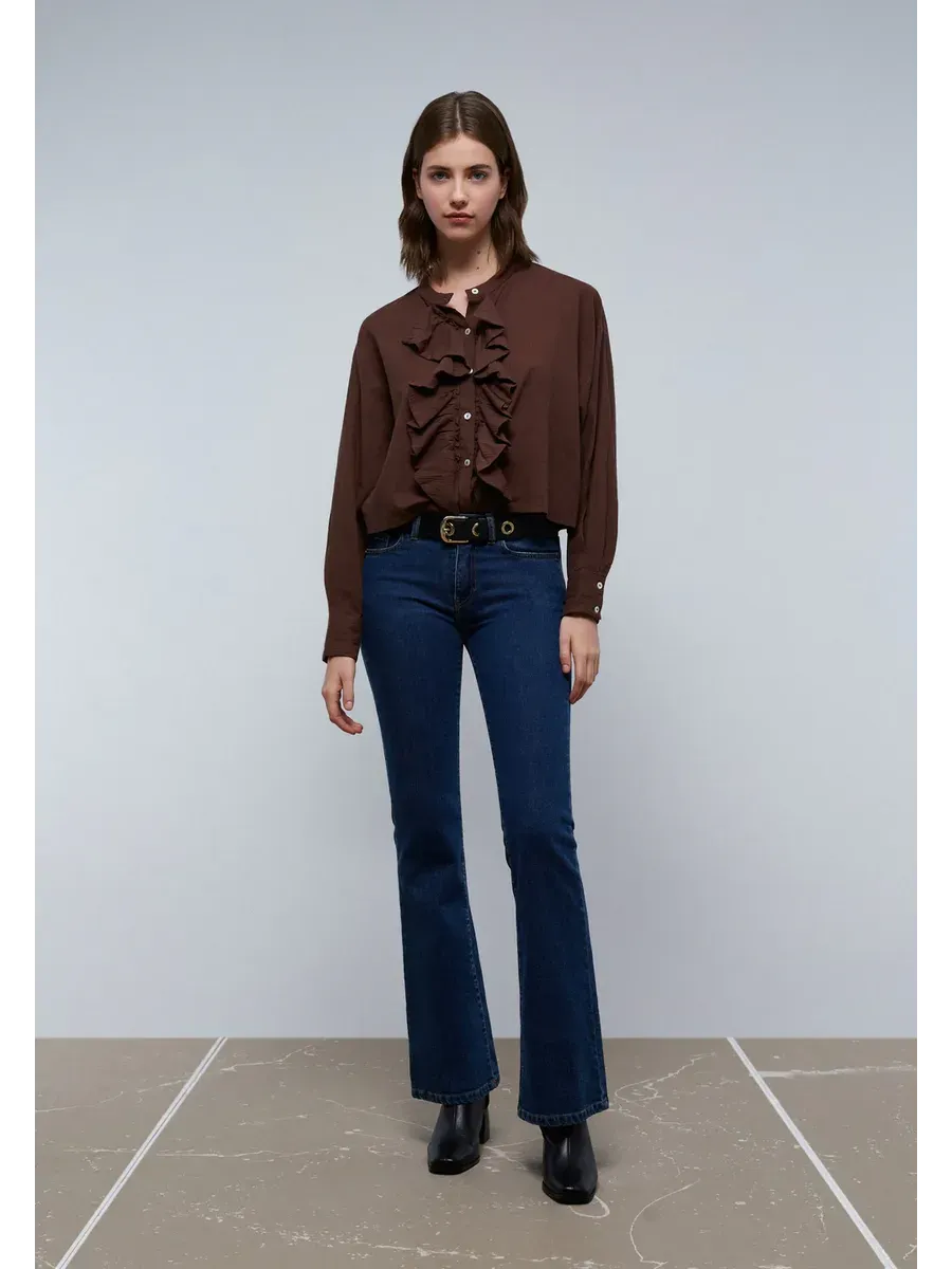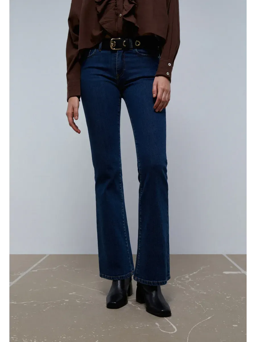 Эффектные расклешенные джинсы от Scalpers подчеркивают достоинства фигуры и понравятся поклонницам женственных образов.
