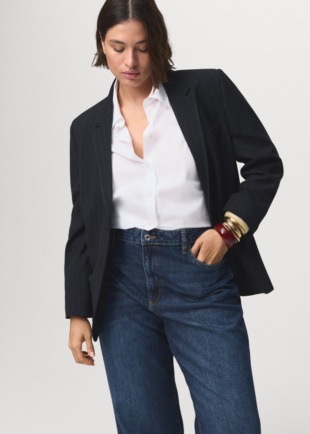 джинсовая ткань из хлопка в стиле ковбой, длинный дизайн, модель с широкими штанинами, высокая посадка, шлёвки, пять карманов, застежка-молния и пуговица, длина по внутреннему шву 84,5 см, доступно plus,, . внутренняя длина: 84,5 cm . внешняя длина: 112,0 cm