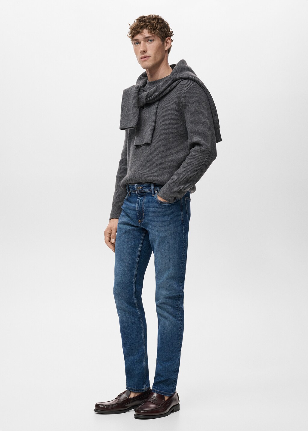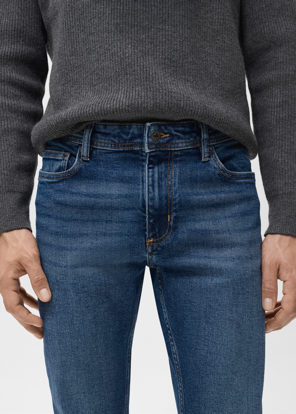 стандартная длина, два накладных кармана сзади, модель ростом 190 см носит размер 42, темный цвет с эффектом потертости, джинсовая ткань из хлопка в стиле ковбой, шлевки для ремня, пять карманов, два передних прорезных кармана, силуэт слим, посадка на талии regular waist, слим фит, хлопковая ткань, стиль джинсов, застежка на пуговицу и молнию, боковые карманы, карман для монет,, . внутренняя длина: 80,0 cm . внешняя длина: 105,0 cm