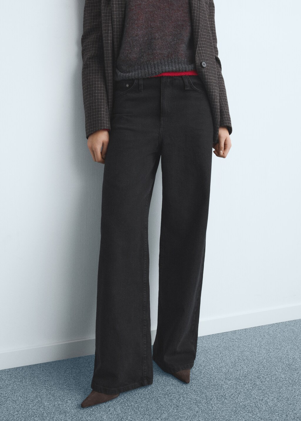 Джинсы с широкими штанинами и средней посадкой от MANGO - это стильный и комфортный выбор для женщин.