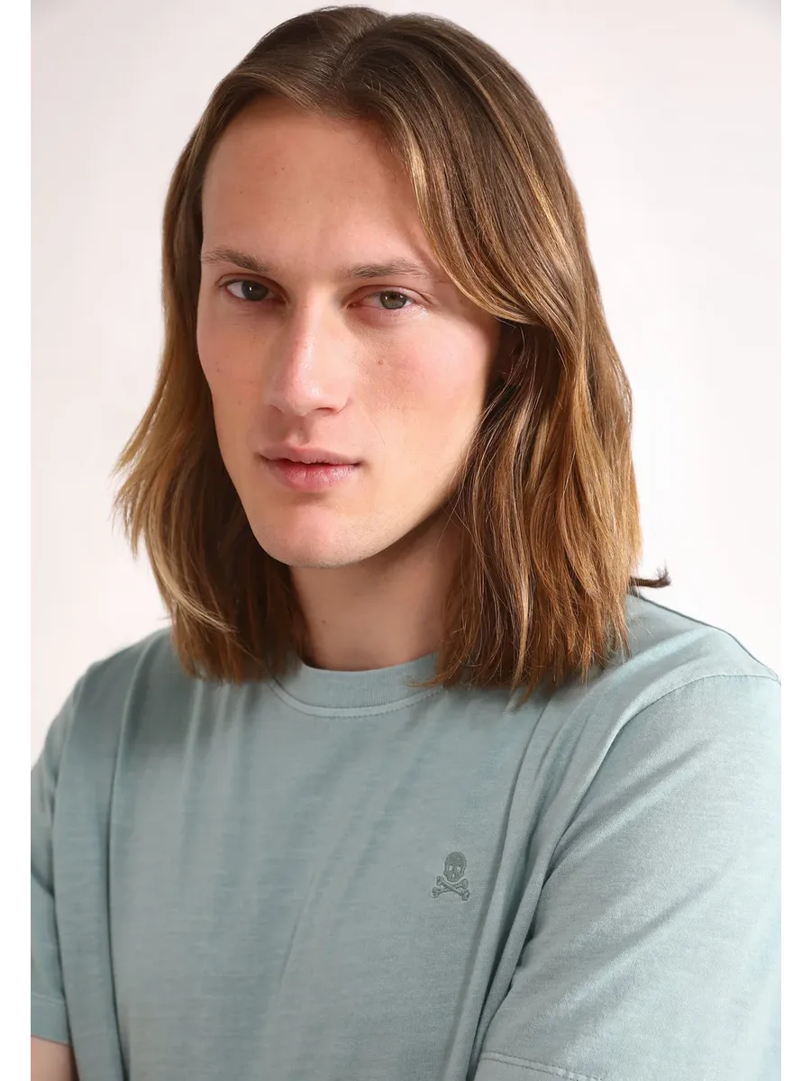 Базовая футболка с вышитым черепом. Изготовлена из 100% органического хлопка Обычная посадка Круглый вырез Короткий рукав