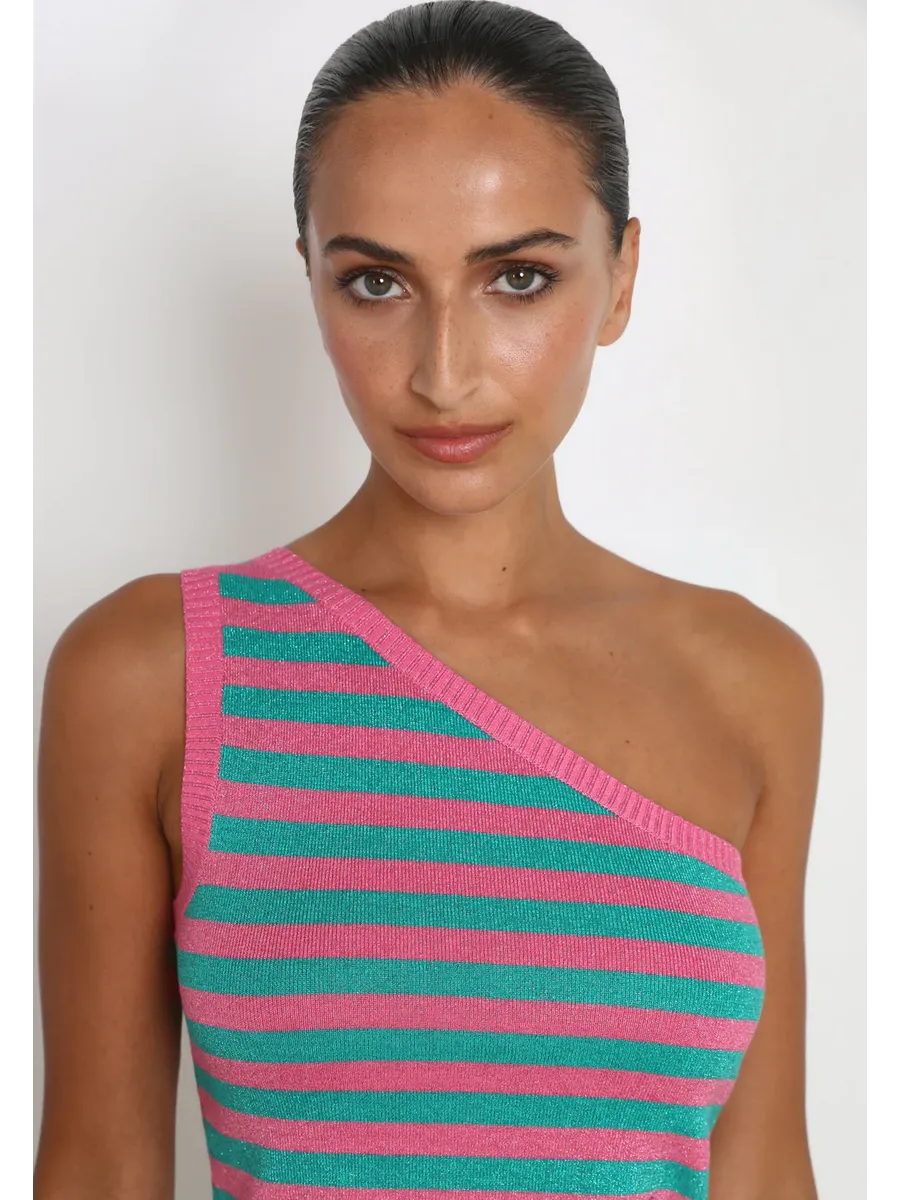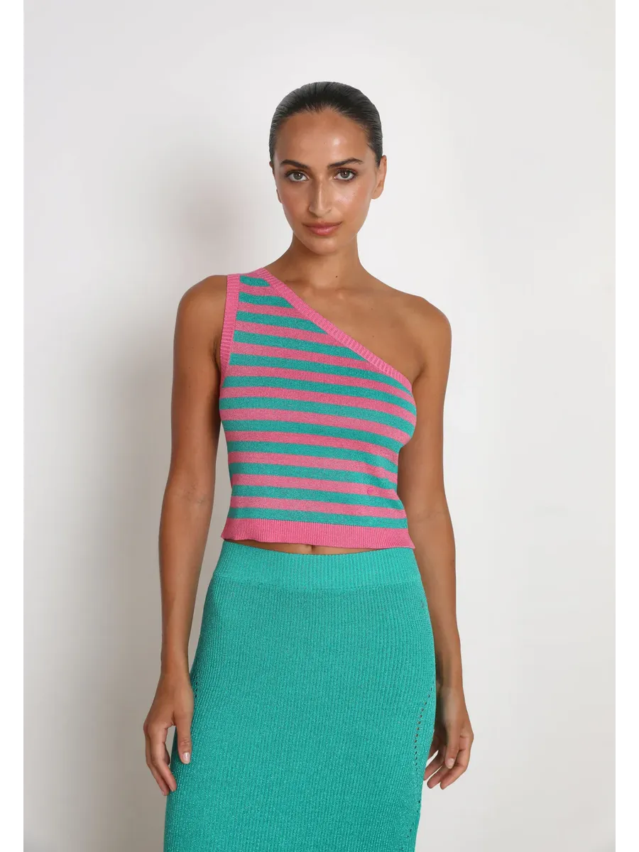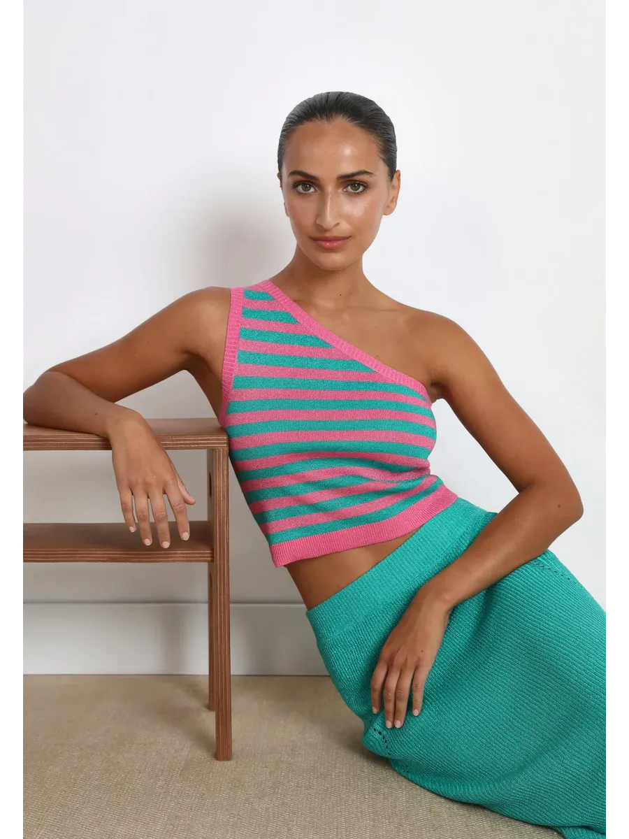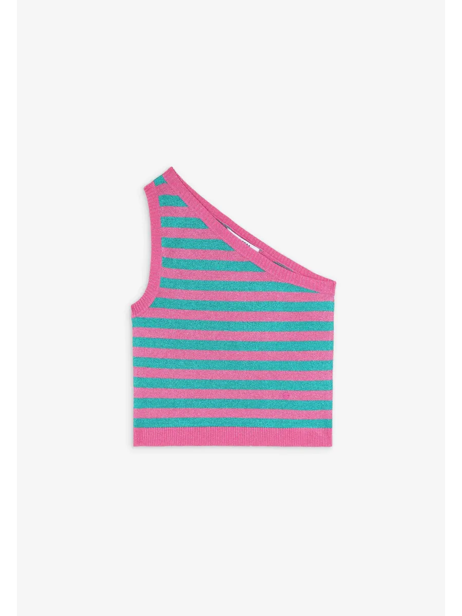 Вязаный топ в полоску. Изготовлен из ткани с металлическими деталями Corte cropped Slim Fit Асимметричный вырез горловины Широкий топ на бретельках