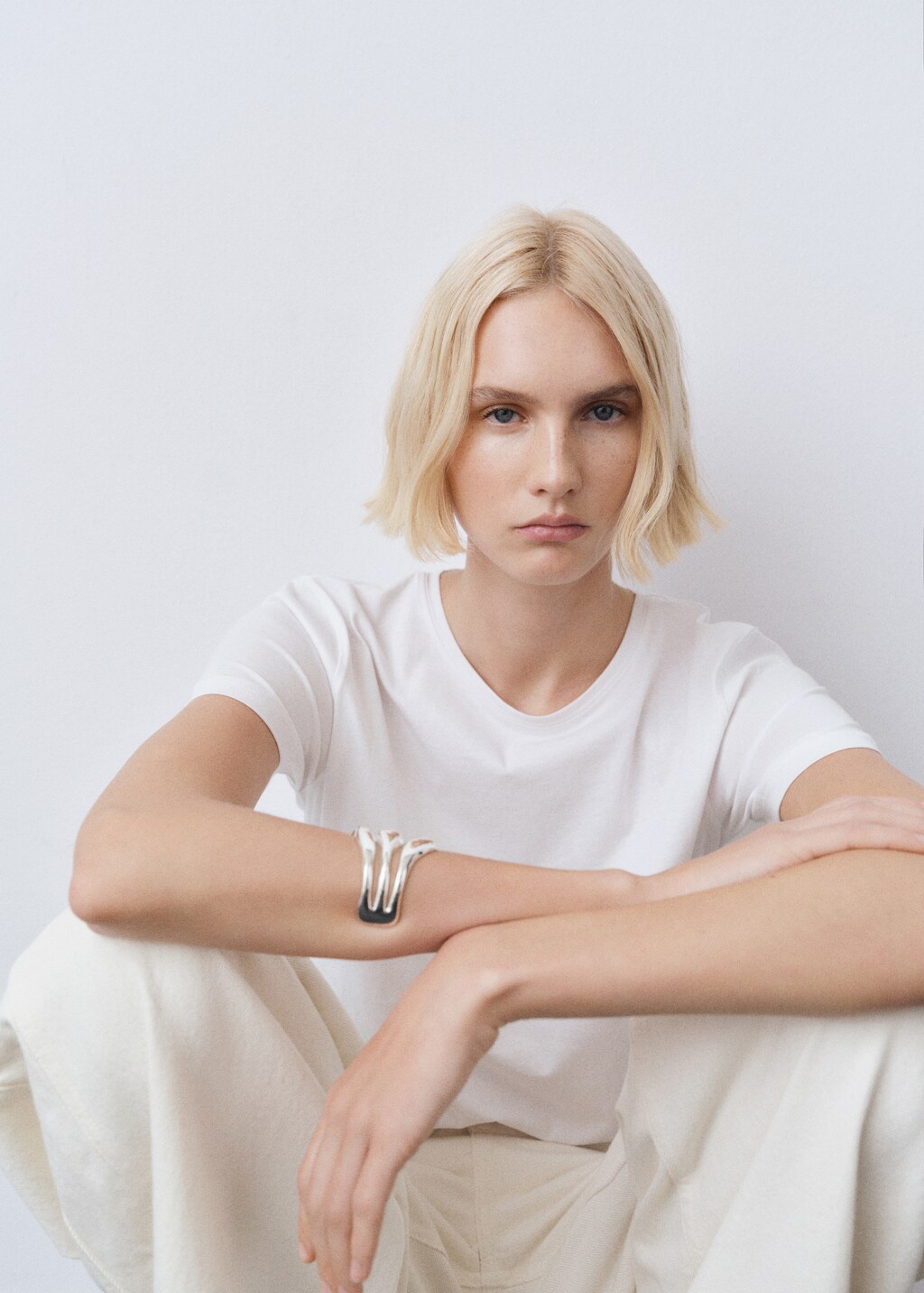 Футболка из хлопка от MANGO - это стильный и комфортный выбор для повседневной носки. Бренд MANGO известен своим качеством и долговечностью, поэтому вы можете быть уверены в том, что эта футболка прослужит вам долгое время.