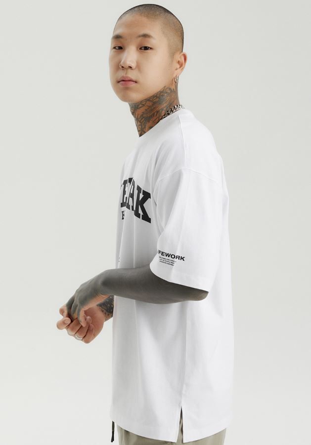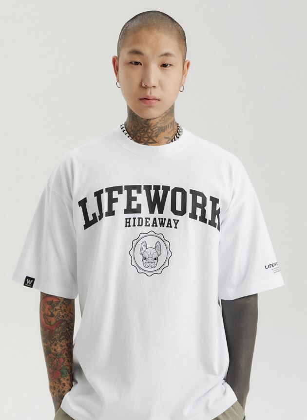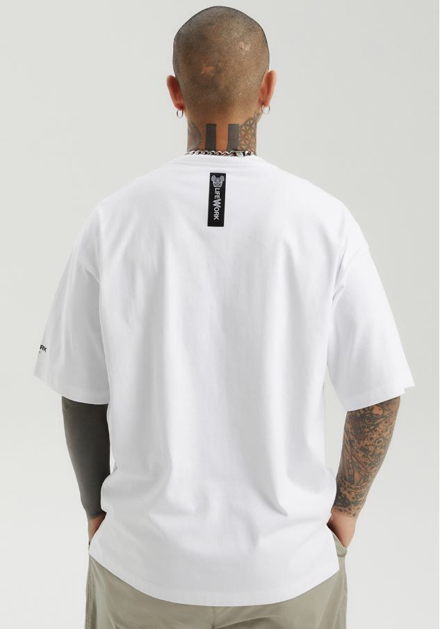 Футболка LifeWork из 100% хлопка выполнена в стиле оверсайз с короткими рукавами, обеспечивая комфорт и свободу движений. Модель в классическом белом цвете украшена арочной надписью и принтом LADOK, добавляющими стильный акцент. Универсальный свободный крой делает эту футболку подходящей для всех и отличным выбором для повседневного гардероба.