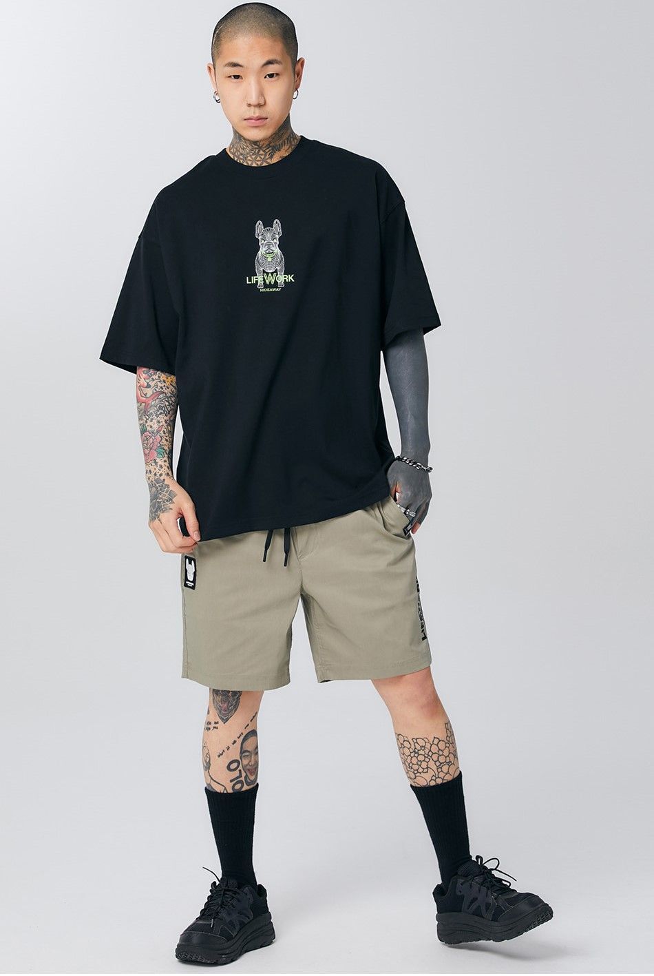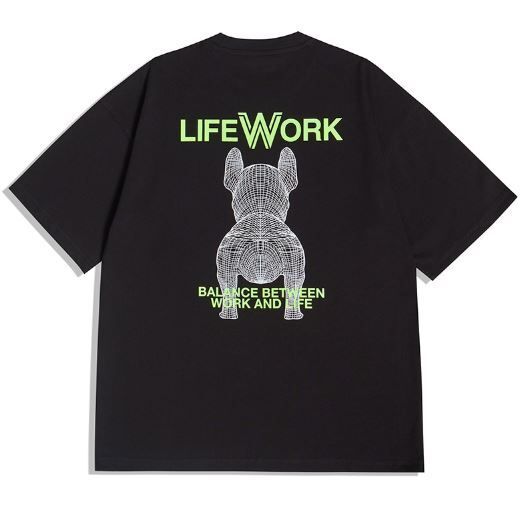 Футболка LifeWork из 100% хлопка выполнена в стиле оверсайз с короткими рукавами, что обеспечивает комфорт и свободу движений. Модель в классическом черном цвете украшена заметным логотипом BIG LADOK и оригинальным принтом, придающими образу яркий акцент. Универсальный дизайн подходит как мужчинам, так и женщинам, делая эту футболку отличным выбором для повседневного гардероба в духе корейского стритстайла.