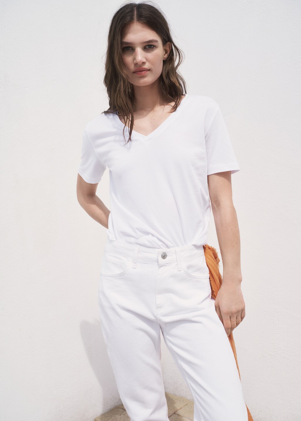 100% органический хлопок, прямой крой, v-образный вырез, короткий рукав, без застежки, доступно plus,, . внешняя длина: 36,5 cm . длина спины: 57,5 cm