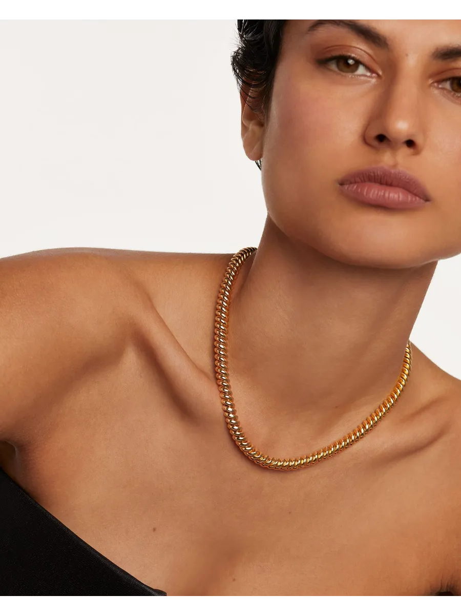 Изготовленное из качественной латуни колье Gaia обладает гальваническим покрытием, что придает ему блеск и долговечность.
