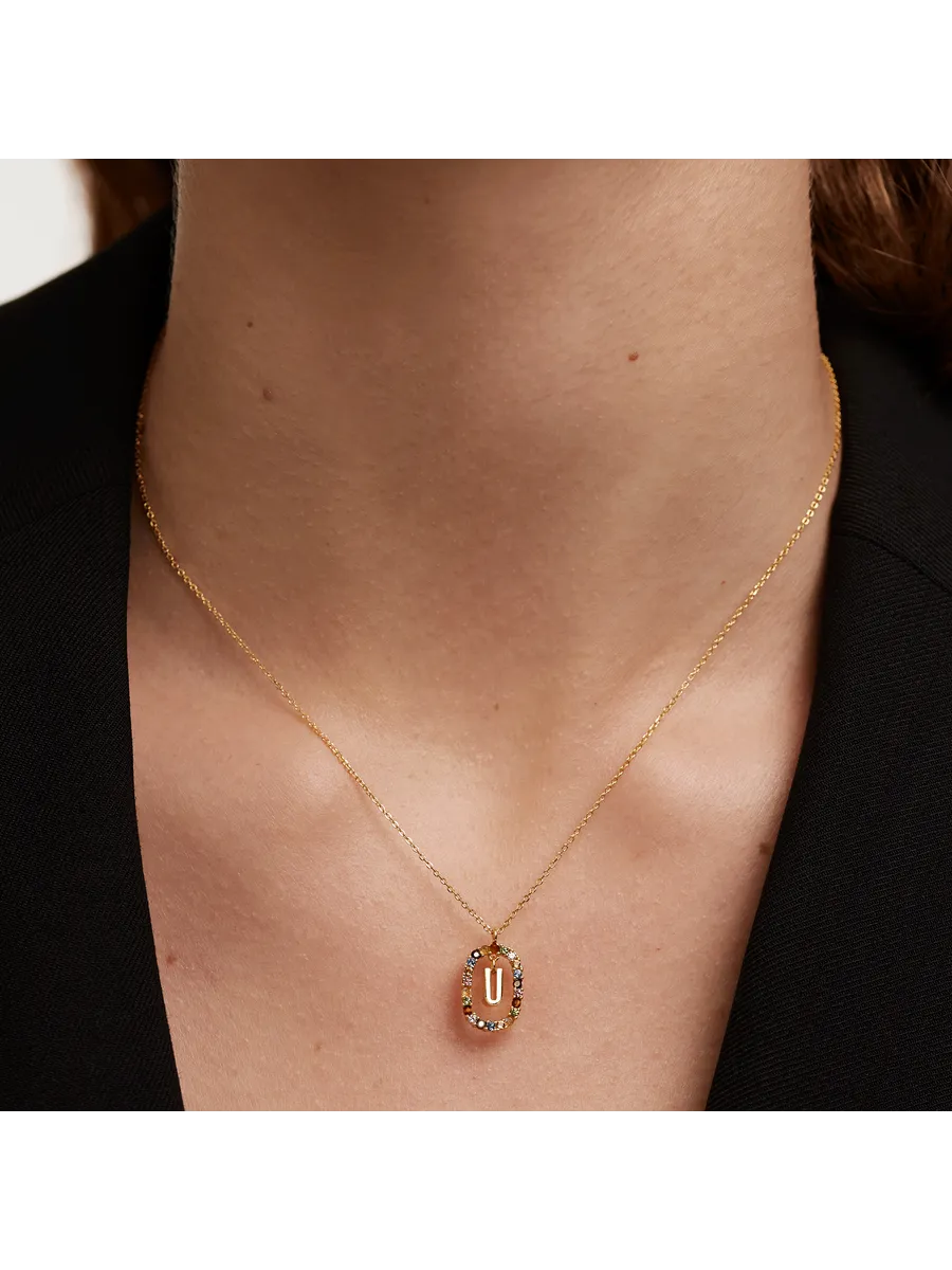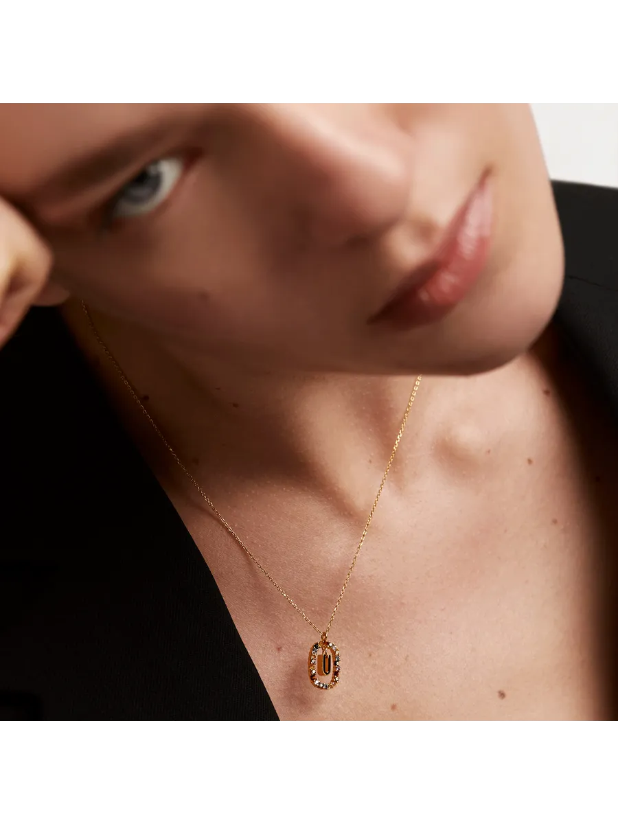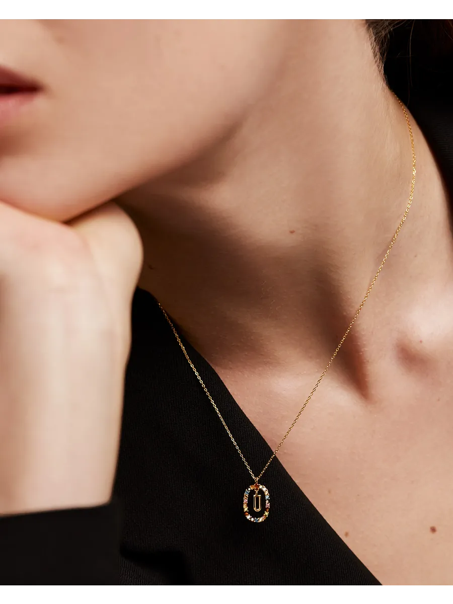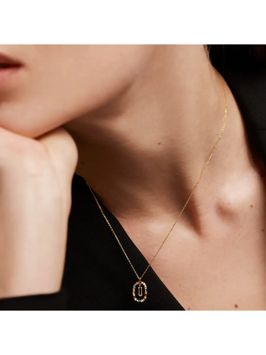 Колье серебряное женское Буква U - стильное и элегантное украшение, которое станет прекрасным дополнением к вашему образу. Изготовлено из качественного серебра 925 пробы с гальваническим покрытием 18‑каратным золотом, что гарантирует долговечность и сохранность изделия.