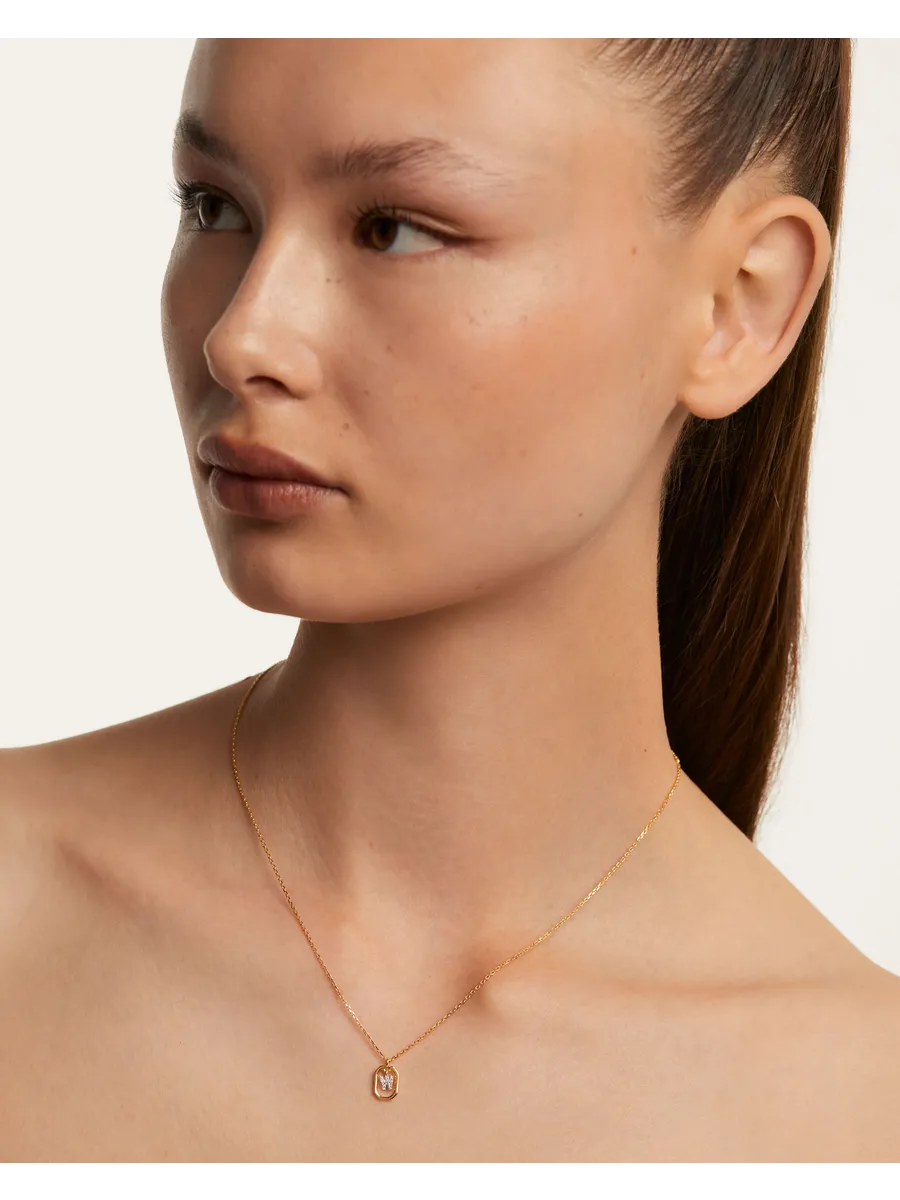 Колье женское PDPaola Мини-Буква W серебро 925 пробы покрытое золотом 750 пробы CO01-534-U