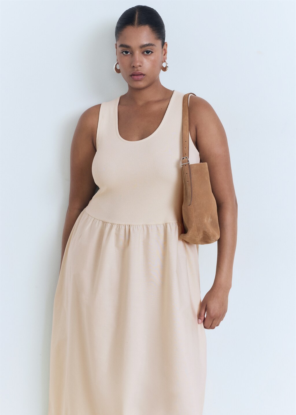 Комбинированное платье с пышной юбкой от MANGO - это стильный и элегантный выбор для любого случая.