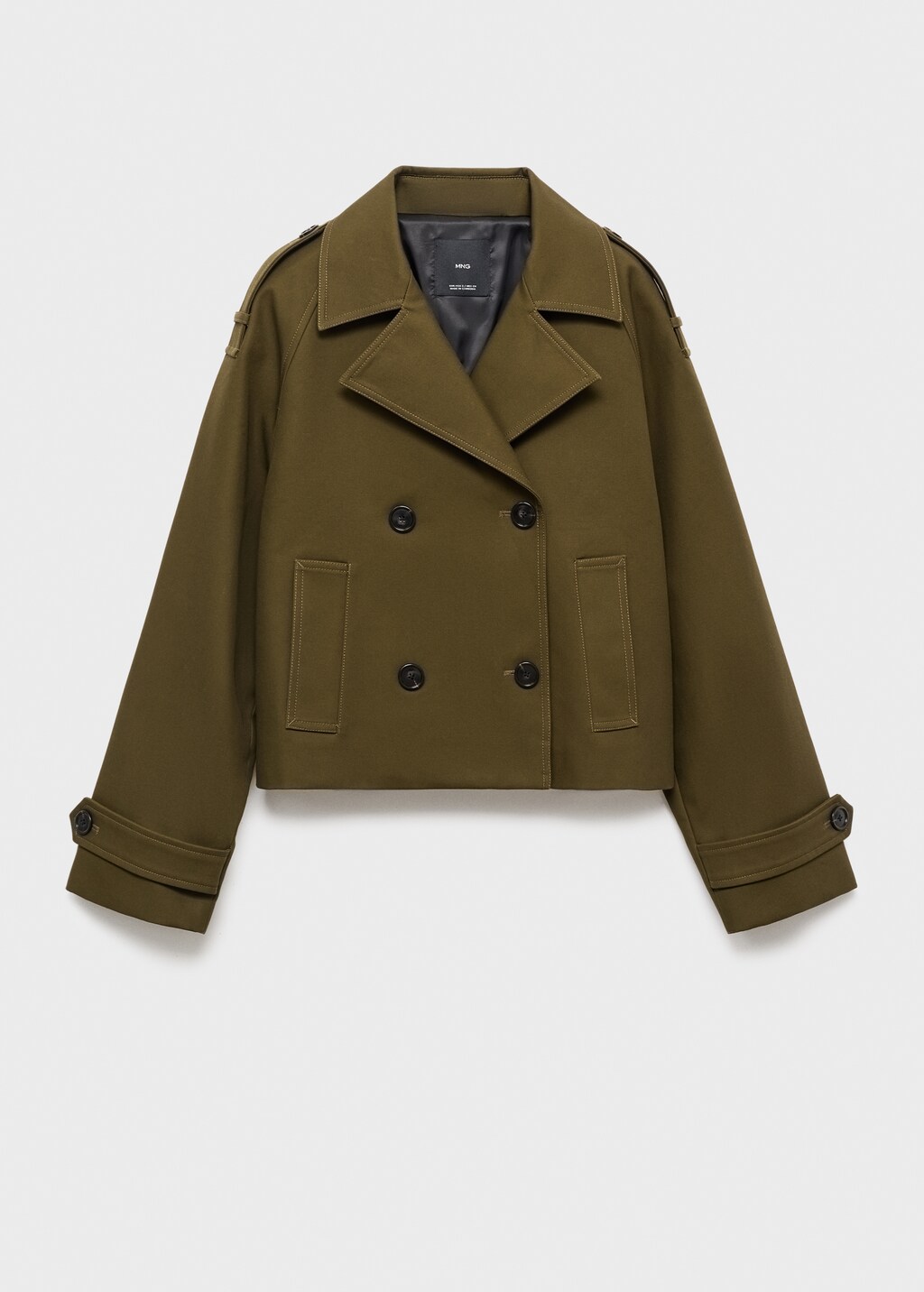 ткань 100% хлопок, внутренняя подкладка, короткий дизайн, оверсайз дизайн, v-образный вырез горловины с лацканами, лацканы с вырезом, длинные рукава с манжетами-хлястиками на пуговице, на плечах хлястики, два боковых кармана, двубортная застежка,, . внешняя длина: 25,0 cm . длина спины: 55,0 cm
