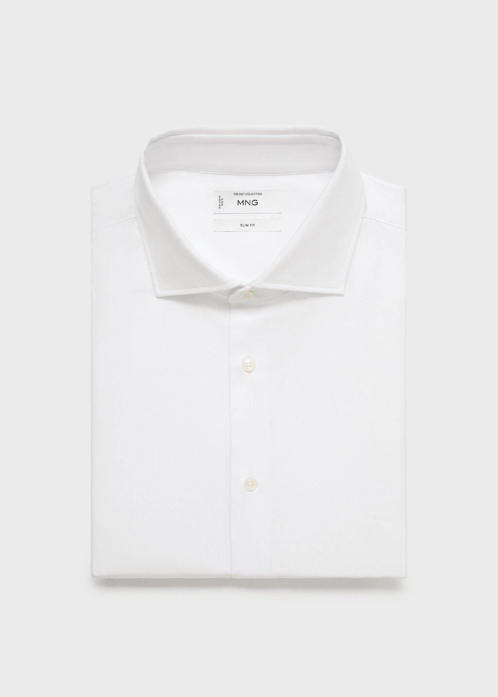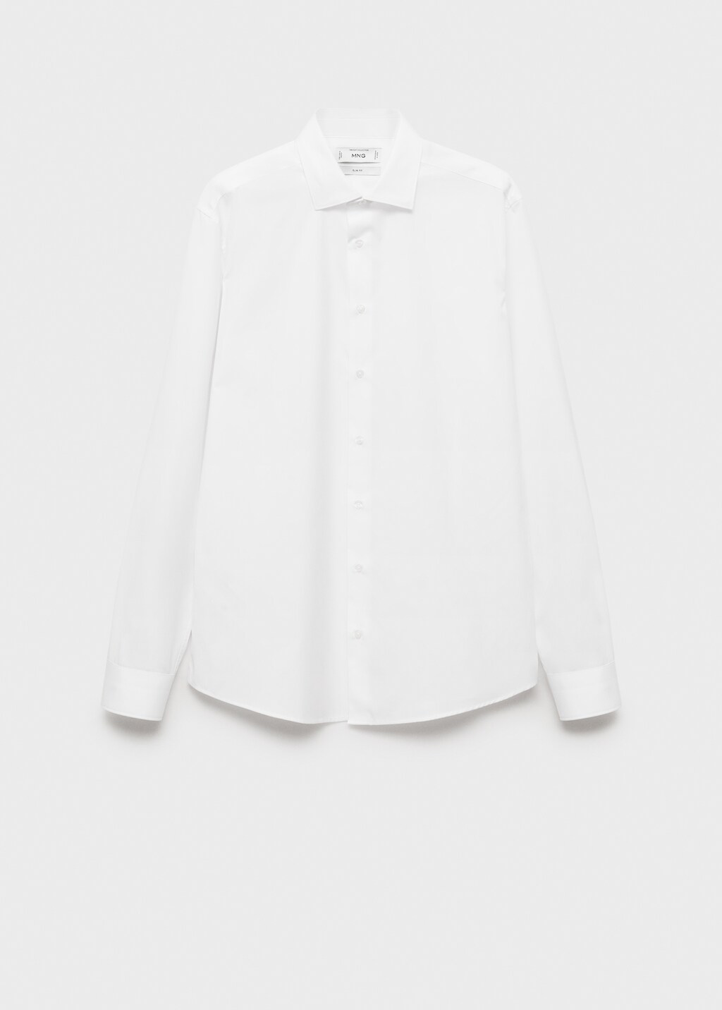 слим фит, длинный рукав, легкая плоская структура, силуэт слим, расположение застежки передняя застежка, застежка на пуговицы спереди, рубашечный воротник с лацканами, ткань поплин из 100% хлопка, easy iron: легкая глажка, американский воротник, длинные рукава с застежкой на пуговицы, передняя застежка на пуговицы, закругленный низ, модель ростом 185 см и носит размер m, стандартная длина,, . длина спины: 76,0 cm