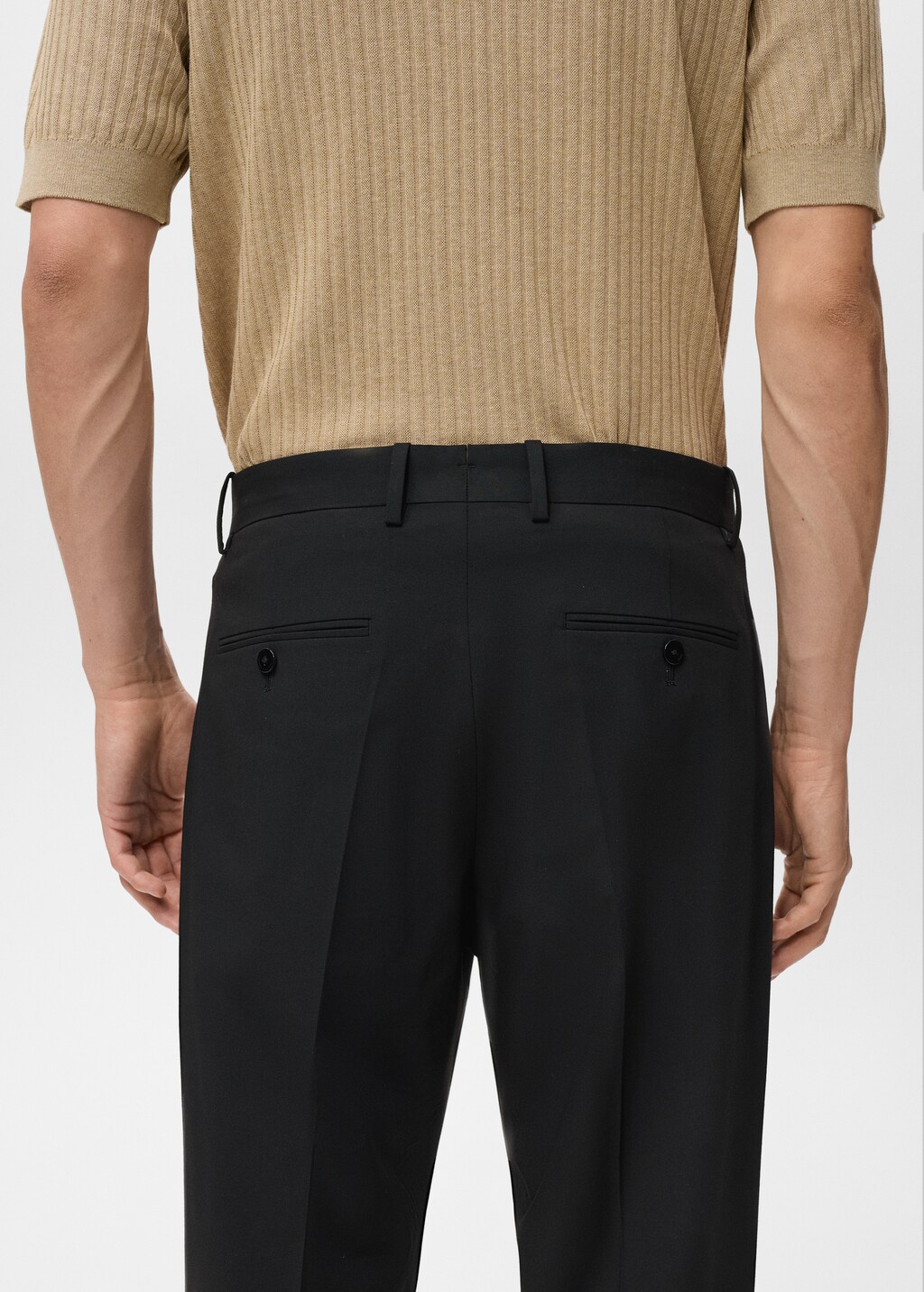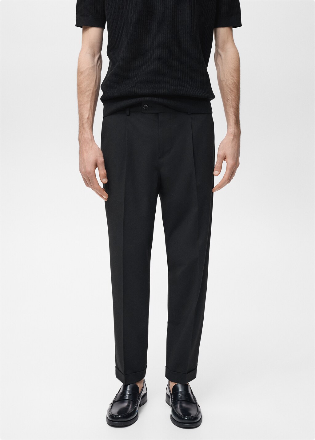 коллекция портновских изделий, штанины с отворотами, модель ростом 190 см носит размер 42, прямой крой, кроп-дизайн, спереди защипы, застежка на пуговицы, крючок и молнию, шлевки для ремня, два боковых кармана, карман для монет, два прорезных кармана с пуговицей сзади,, . внутренняя длина: 71,8 cm . внешняя длина: 100,0 cm