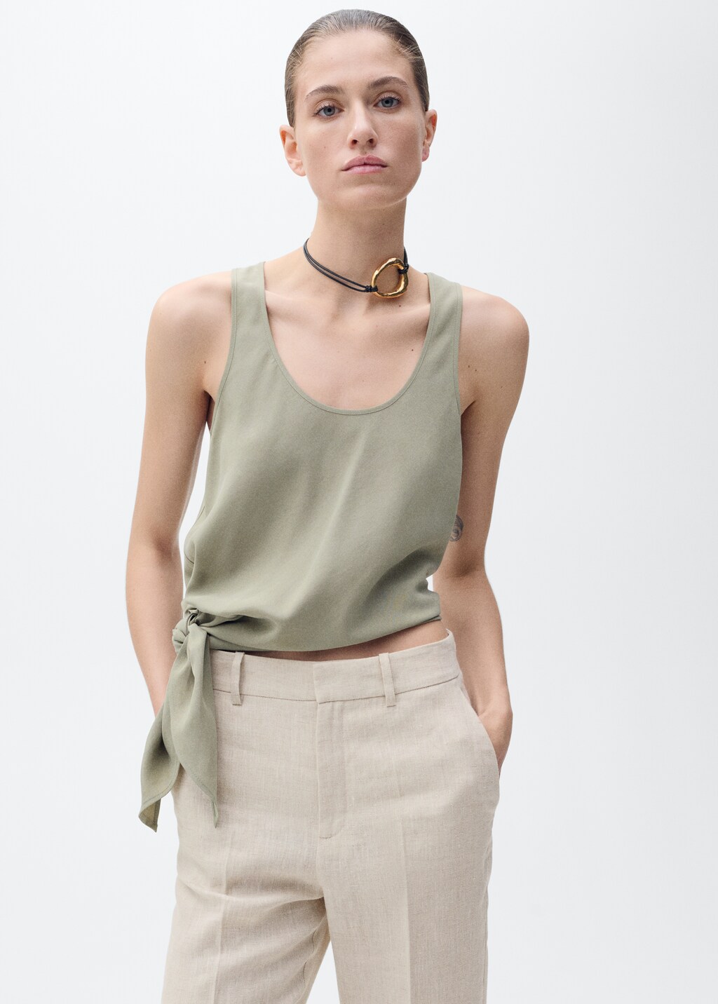 Костюмные брюки изо льна от MANGO - это выбор в пользу комфорта, стиля и качества.