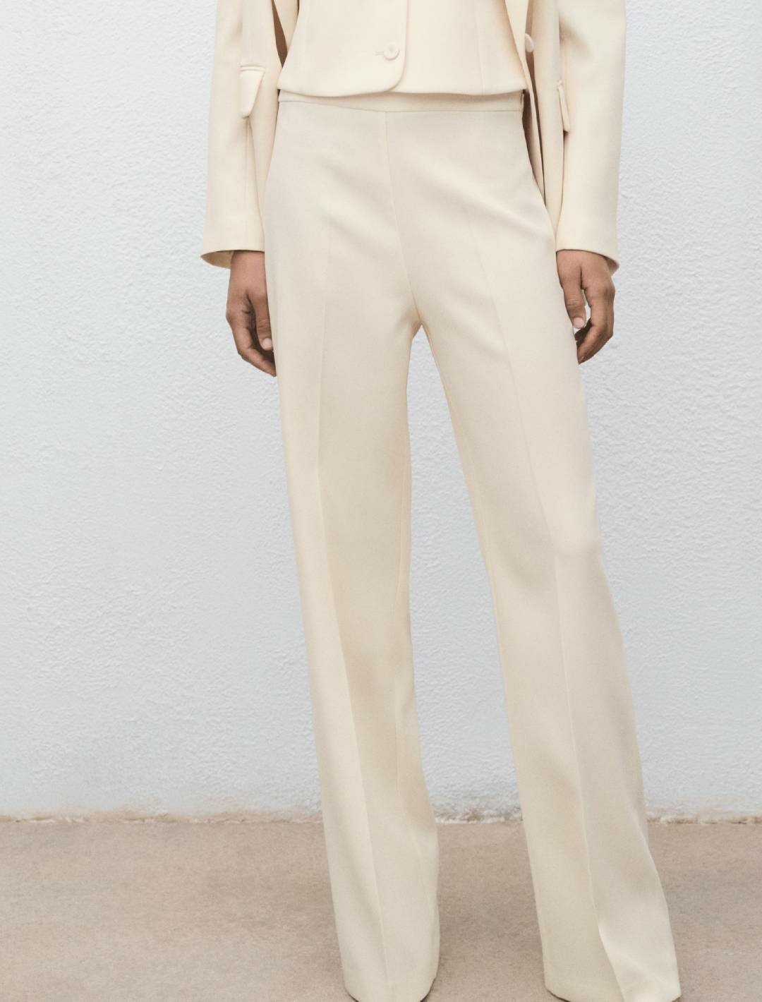 Костюмные брюки прямого кроя со средней посадкой от бренда MANGO - это стильный и комфортный выбор для современных женщин.