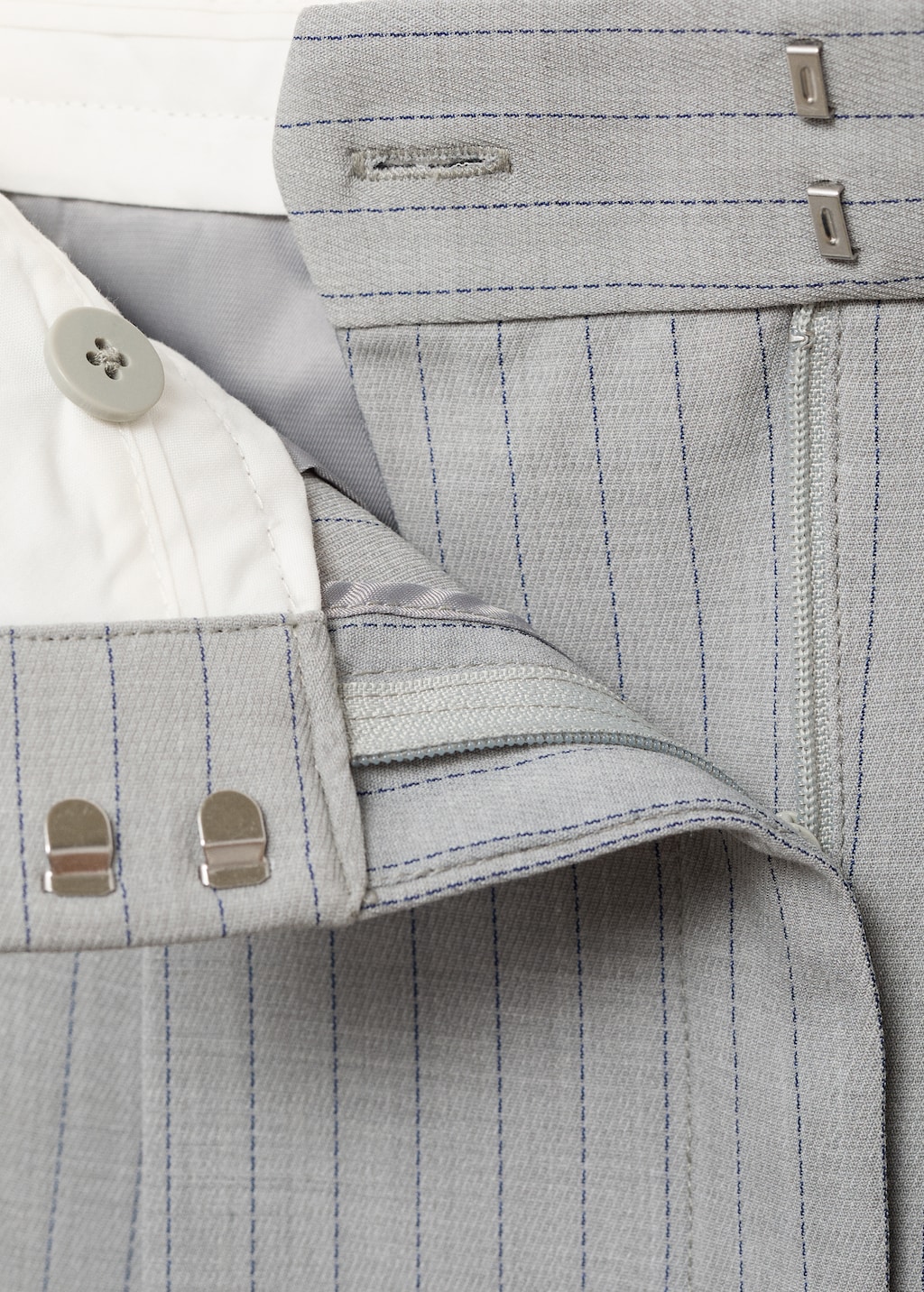 Брюки выполнены в классическом стиле, что делает их подходящими для любого случая. Узкая полоска придает им элегантность и утонченность, делая их отличным выбором для работы, деловых встреч или торжественных мероприятий.