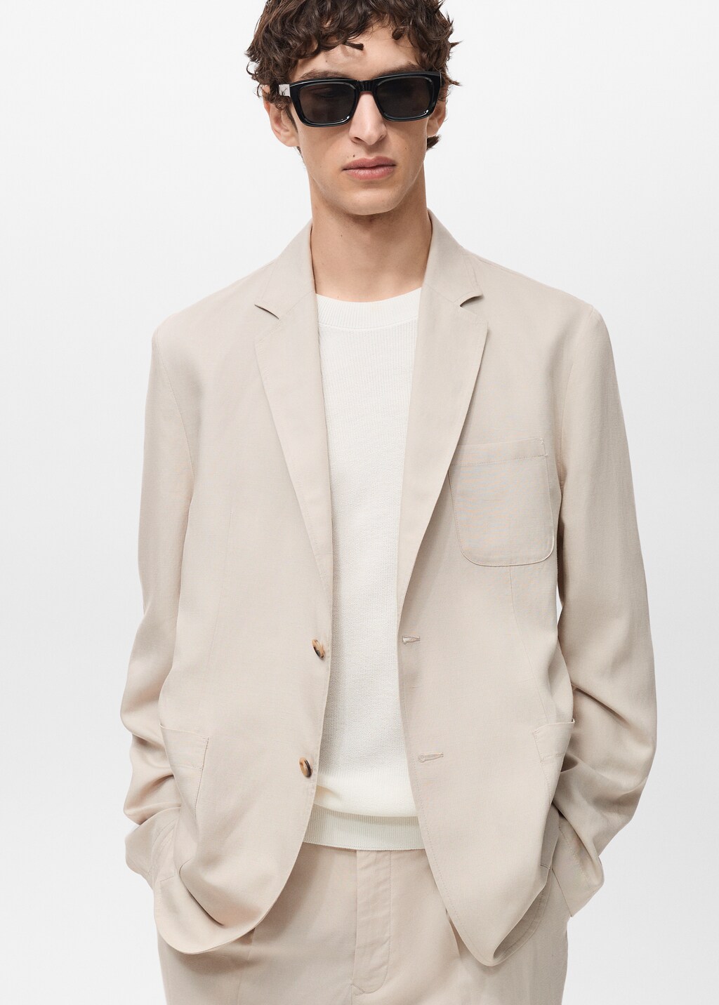 в состав входят лен и лиоцелл, коллекция портновских изделий, слим фит, воротник с лацканами и вырезом, передняя застежка на пуговицы, на груди маленький накладной карман, два боковых накладных кармана, модель ростом 190 см и носит размер 50,, . длина спины: 80,1 cm