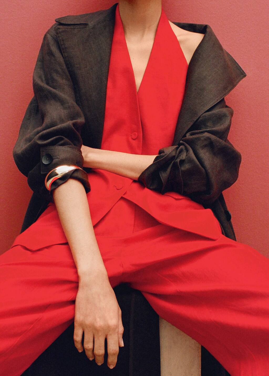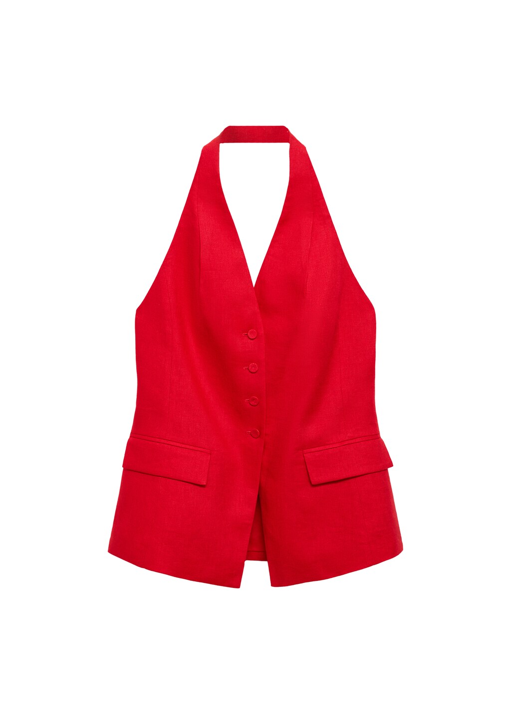 Костюмный жилет халтер изо льна от MANGO - это стильный и функциональный элемент гардероба, который станет незаменимым в вашем повседневном образе.