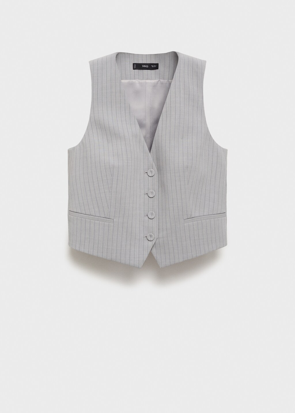 прямой крой, доступно plus, узор в узкую полоску, v-образный вырез, без рукавов, широкие бретели, спереди два прорезных кармана, передняя застежка на пуговицы, внутренняя подкладка, total look,, . внешняя длина: 23,0 cm . длина спины: 44,1 cm