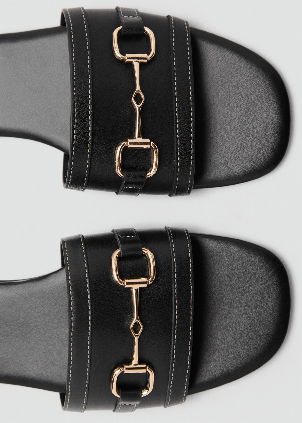 100% кожа быка, флэт, дизайн с ремешком, дизайн с открытой пяткой, декоративная пряжка, без застежки