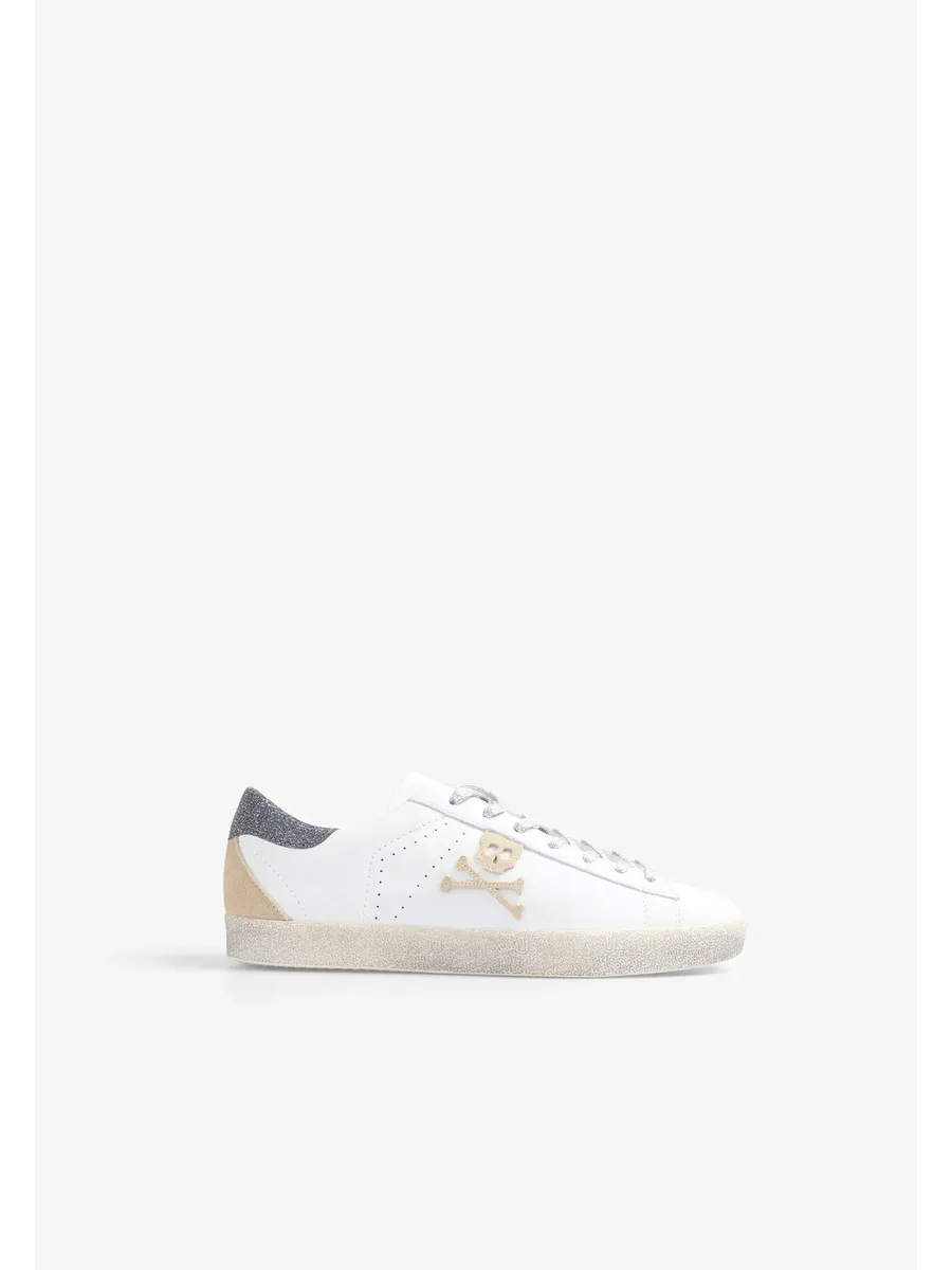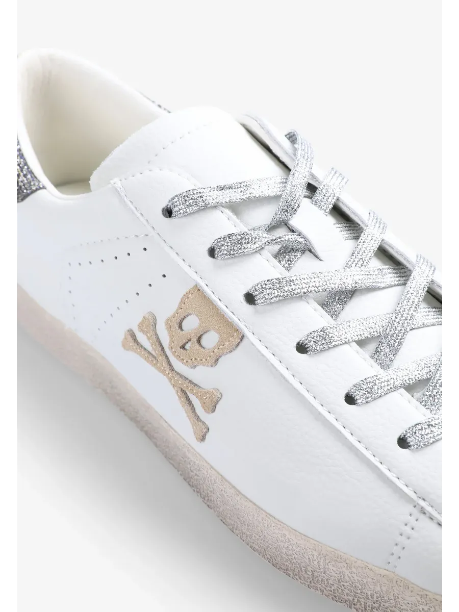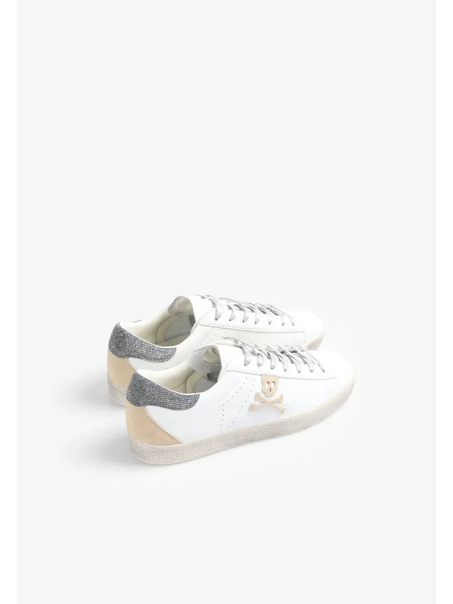 Кроссовки Изготовлены из кожи Застежка на шнуровке Переработанная резиновая подошва с эффектом износа деталей Боковой череп с блестками Контрастная металлическая деталь сзади