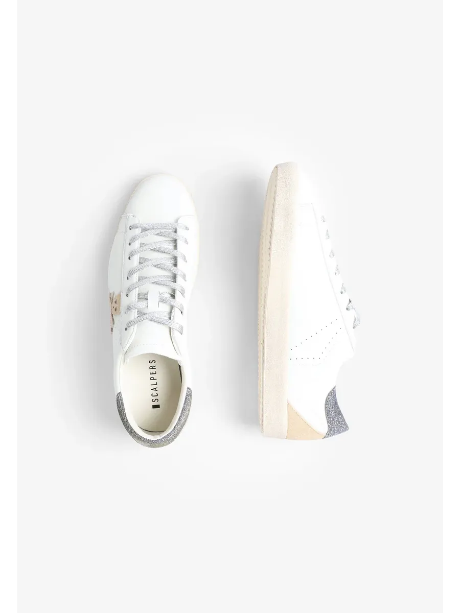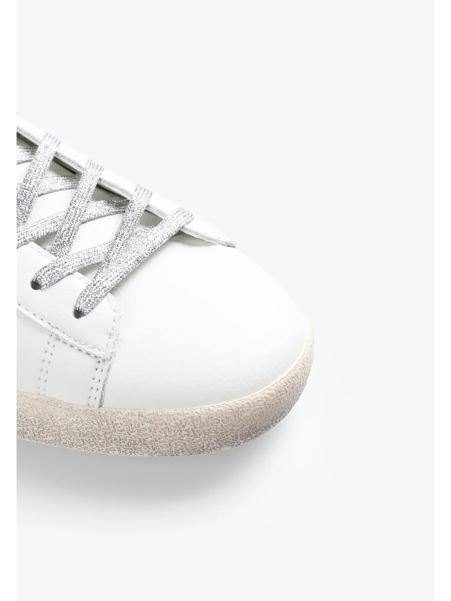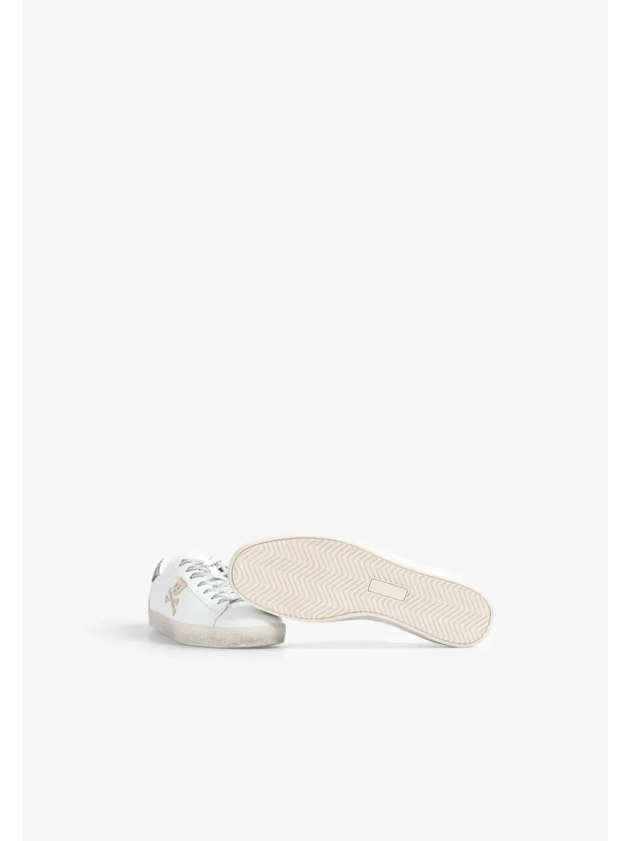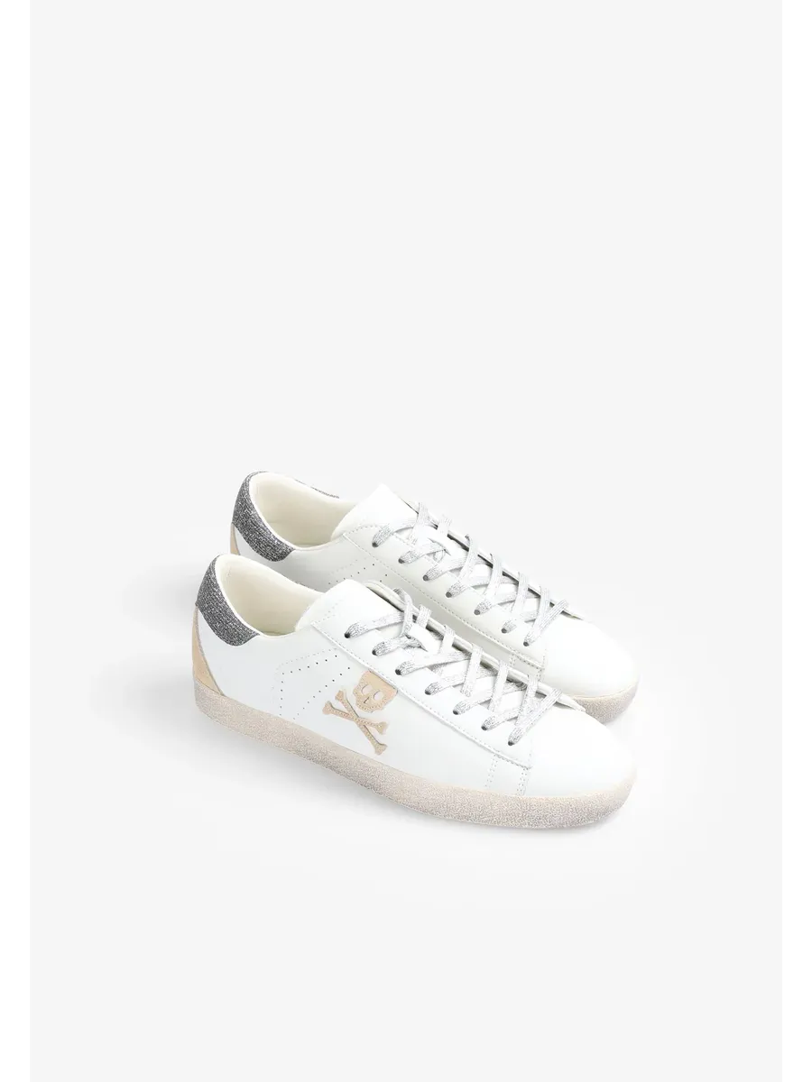 Кроссовки Изготовлены из кожи Застежка на шнуровке Переработанная резиновая подошва с эффектом износа деталей Боковой череп с блестками Контрастная металлическая деталь сзади
